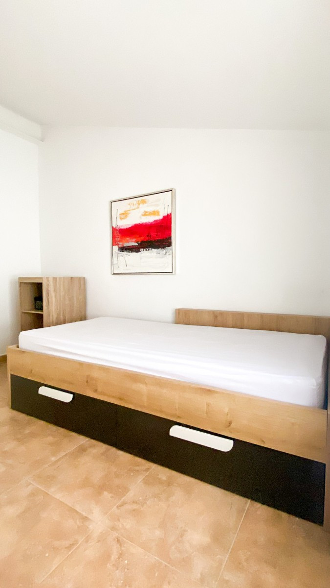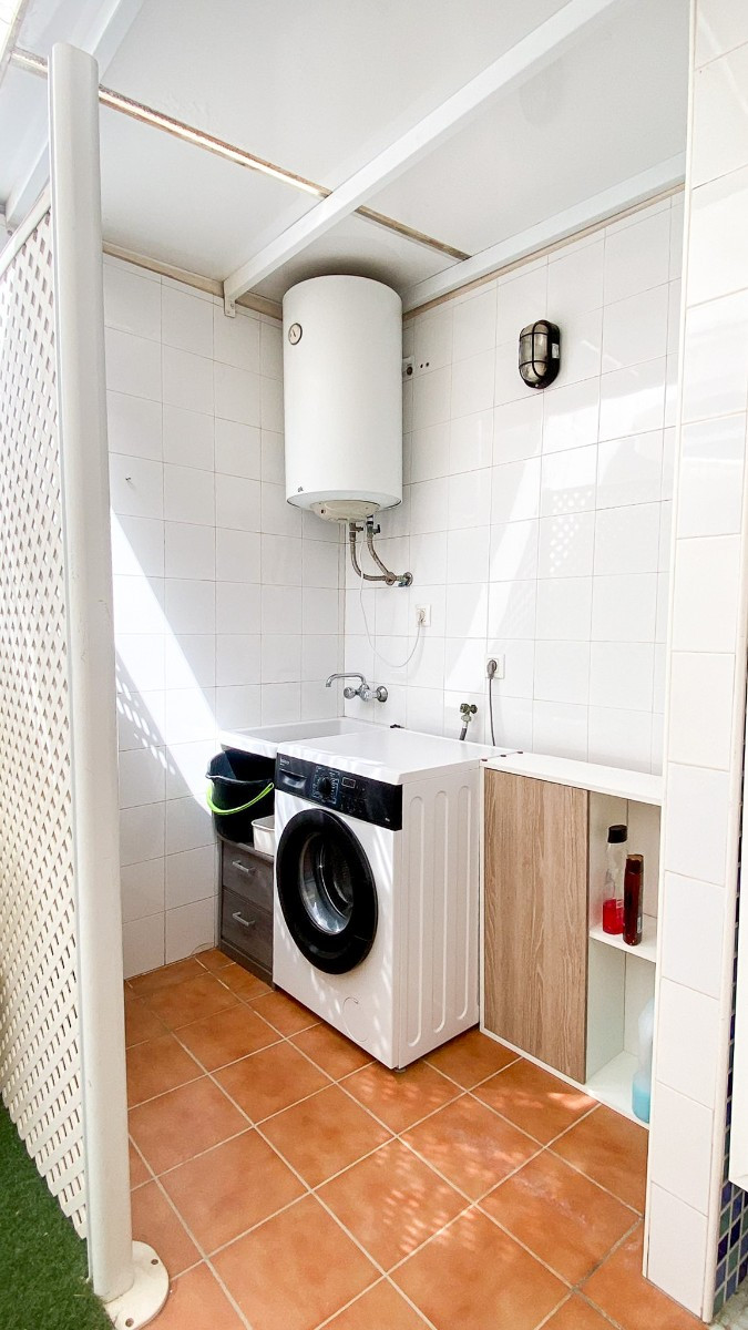 The spacious, open-plan living room connects to a front terrace, ideal for enjoying breakfast in the sun , while a practical utility room is located at the rear. The fully equipped kitchen, only eight years old, is in excellent condition. All rooms feature lined built-in wardrobes , white lacquered doors , and modern terrazzo and ceramic tile flooring.\n