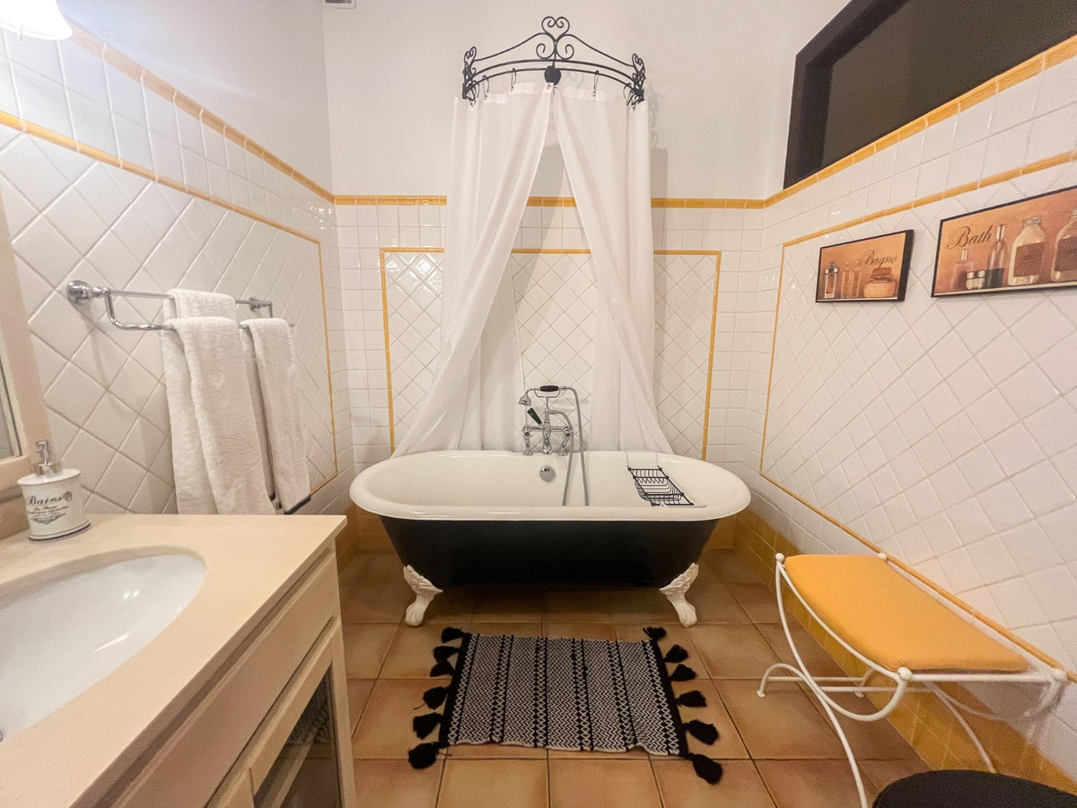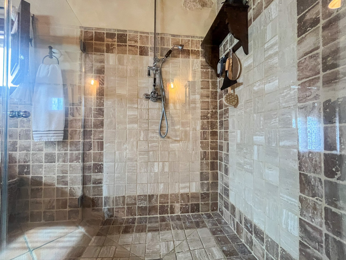 The main house preserves the authenticity of the Mediterranean style thanks to its rough stone walls , beamed ceilings and handmade terracotta floors , creating a warm, elegant and unique atmosphere. Every detail has been carefully restored to preserve its historical essence without sacrificing modern comfort.\n