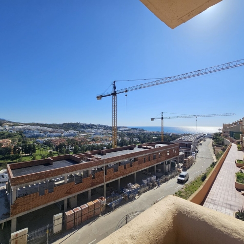 This is the property that has what everyone wants: An easy flat walk in and out of La Cala de Mijas town centre and the beach. The naivgolf community is the kind of place people buy and never move. The only reason this owner is selling is for en extra bedroom, and they are staying in the same community. It's a first floor corner, and although the orientation of the building is east. this one is on the south corner, and is open on the south side, so no lack of sun. The property is in true ¨show home´ condition, and has a large open plan living dining room and kitchen, 2 large double bedrooms and 2 bathrooms. There is a long terrace for outdoor dining, and there is a garage and storage space included. The gated community has wonderful facilities including an enormous pool and garden area, children's play park and 2 Padel tennis courts. Low running costs make this an exceptional buy...
