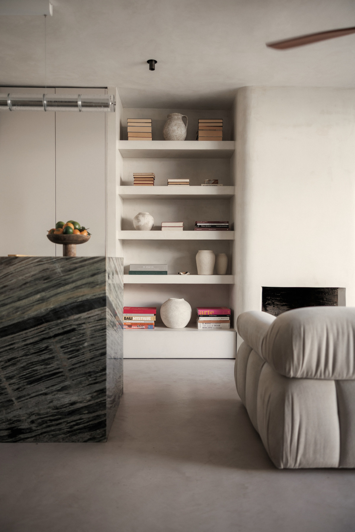 Bostaden är fördelad på två våningsplan och omfattar 89 m2 boyta samt en stor terrass på 50 m2. Entréplanet erbjuder en öppen planlösning med vardagsrum och öppen spis samt ett fullt utrustat designkök med marmorbänk och vitvaror av högsta klass. Vardagsrummet leder ut till den rymliga terrassen på 50 m2 med jacuzzi, utedusch, sommarkök med grill samt eleganta lounge- och matplatser omgivna av frodig grönska – perfekt för avkoppling eller sociala tillställningar. Ett gäst-wc kompletterar detta plan.