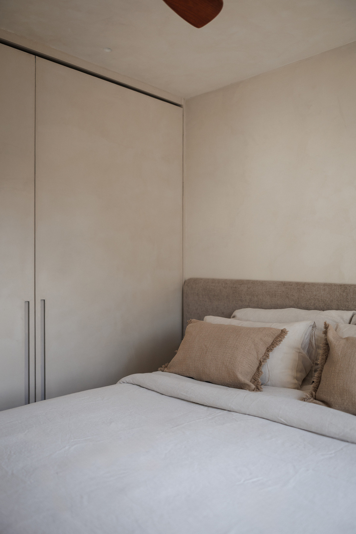 På övre plan finns en master-svit med specialdesignad sänggavel och integrerad garderobslösning som kombinerar elegans med funktionalitet. Ett andra sovrum med eget badrum erbjuder komfort och avskildhet för gäster. Båda badrummen har lyxiga marmordetaljer.