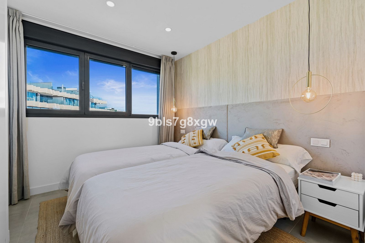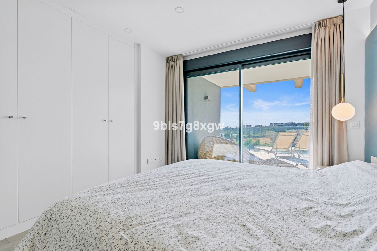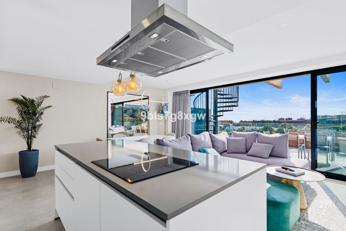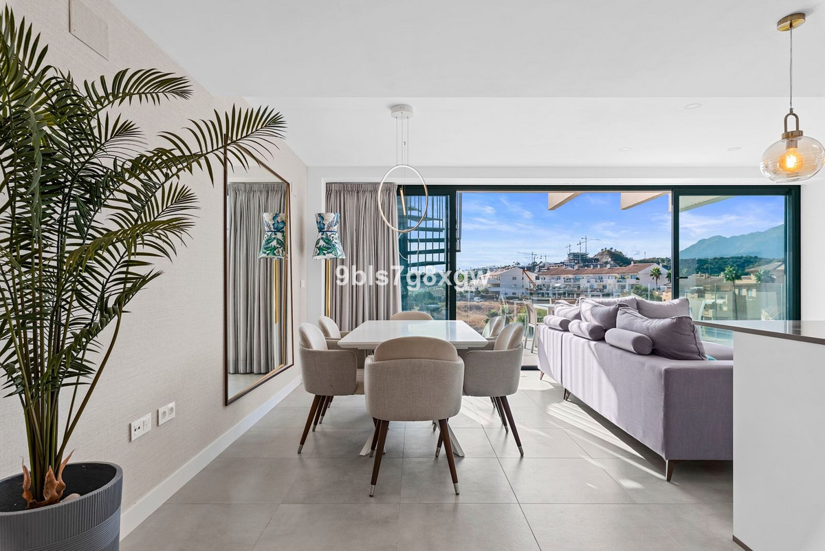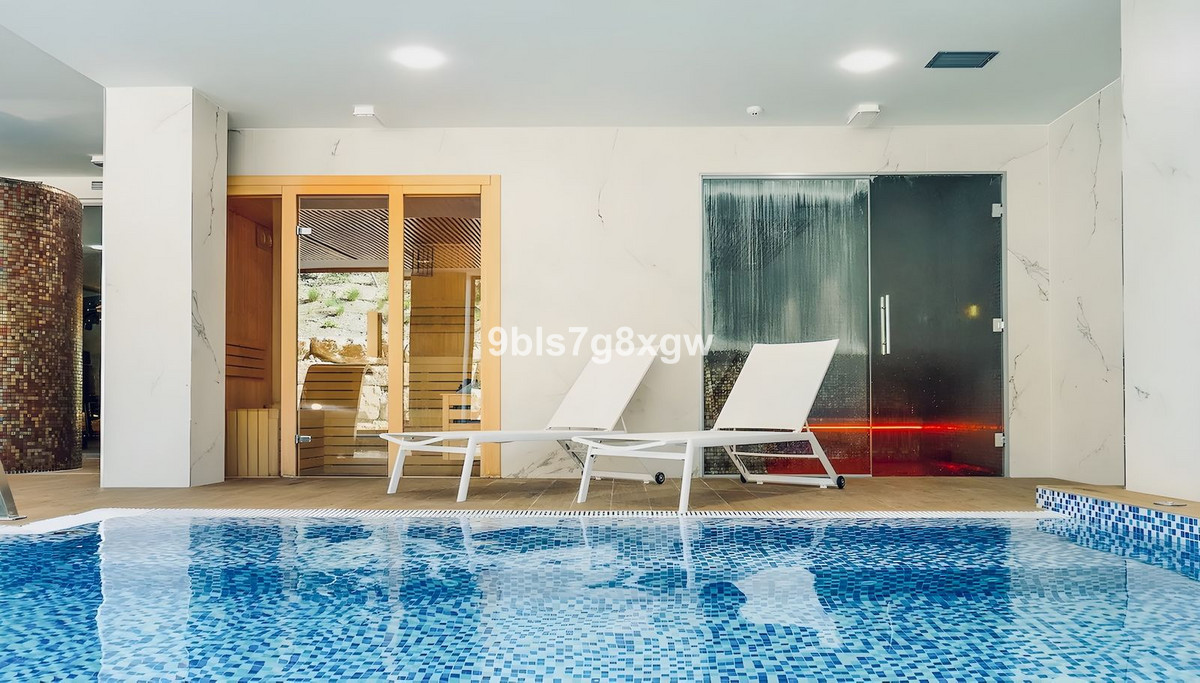 The apartment stands out for its brightness and fluid layout. Large floor-to-ceiling windows create a seamless connection between indoor and outdoor spaces. The fully equipped kitchen (with separate laundry room) opens onto a spacious living-dining area, leading to a large 31m² private South-West facing terrace, partially covered: the ideal spot for al fresco dining, a quiet reading moment, or simply enjoying the panoramic views of the sea, Gibraltar and Selwo Zoo. As night falls, after watching the sunset, the view becomes truly magical.
