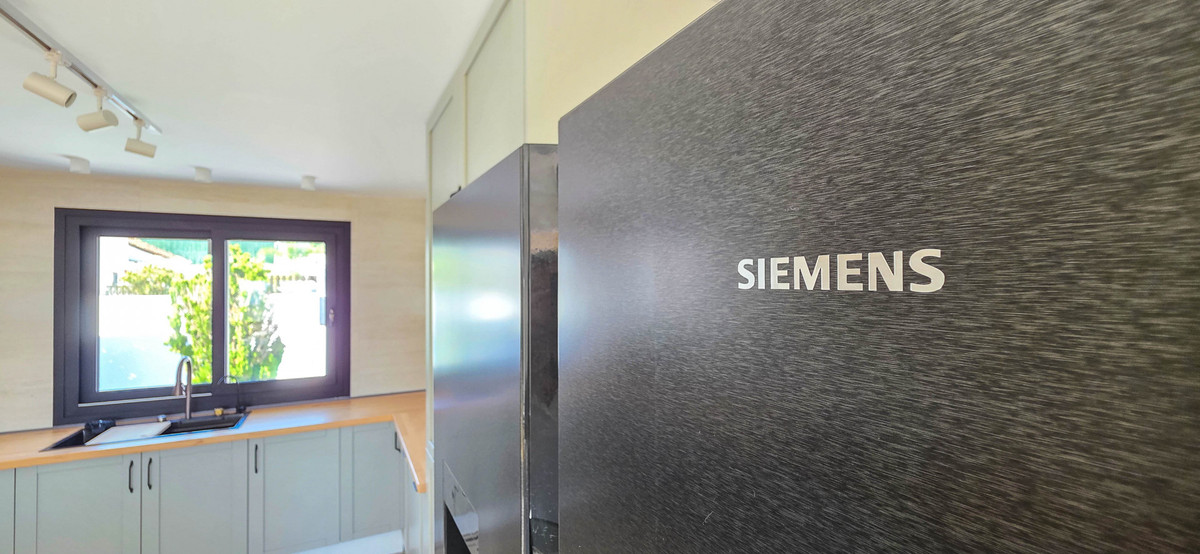 Villan har fyra rymliga sovrum och tre badrum, alla med noggrant utvalda kvalitetsmaterial. Riktigt generöst med förvaringsutrymmen i denna pärla. Badrummen har golvvärme och varje rum är utrustat med en ny, individuellt styrd luftkonditionering för maximal komfort året runt. Det moderna köket är fullt utrustat med vitvaror av hög kvalitet och är integrerat med de ljusa sällskapsytorna i en öppen planlösning.
