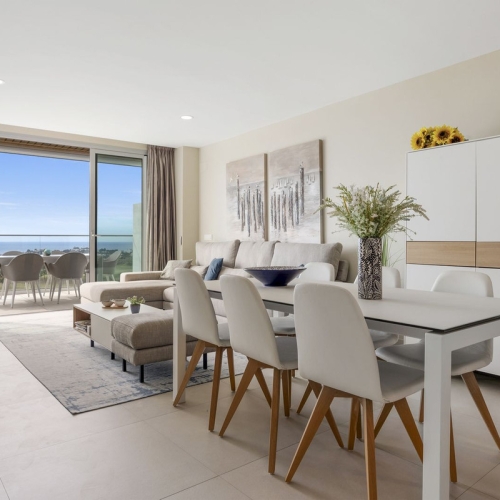 Absolutely beautiful two-bedroom garden apartment located within a sought-after gated and secure community in La Cala de Mijas, only a 5-minute drive from the beautiful local beaches and front line to a very popular golf course (just 1km walk from the golf clubhouse). This naturally bright apartment has marble flooring throughout, an open plan lounge/dining room, a fully fitted kitchen, two good-sized bedrooms with the master having en-suite facilities and direct access to a large terrace; air conditioning, hot and cold, plus a separate underground garage car parking space and storage room completes this quality apartment. The development is gated and secure, with CCTV and overnight guarded security, plus the property has great views over one of the two stunning community swimming pools and the surrounding gardens. The community is surrounded by 20,000 square meters of beautifully landscaped subtropical gardens. Ideally located only 10 to 15 minutes drive from both Marbella and Fuengirola town centres, and around 30 minutes' drive from Malaga International Airport. This is a great investment opportunity and perfect for anyone wanting to be located close to Malaga Airport and the beach, and would make an ideal holiday home or rental investment and now one of the best value properties on the entire southern coast of Spain!