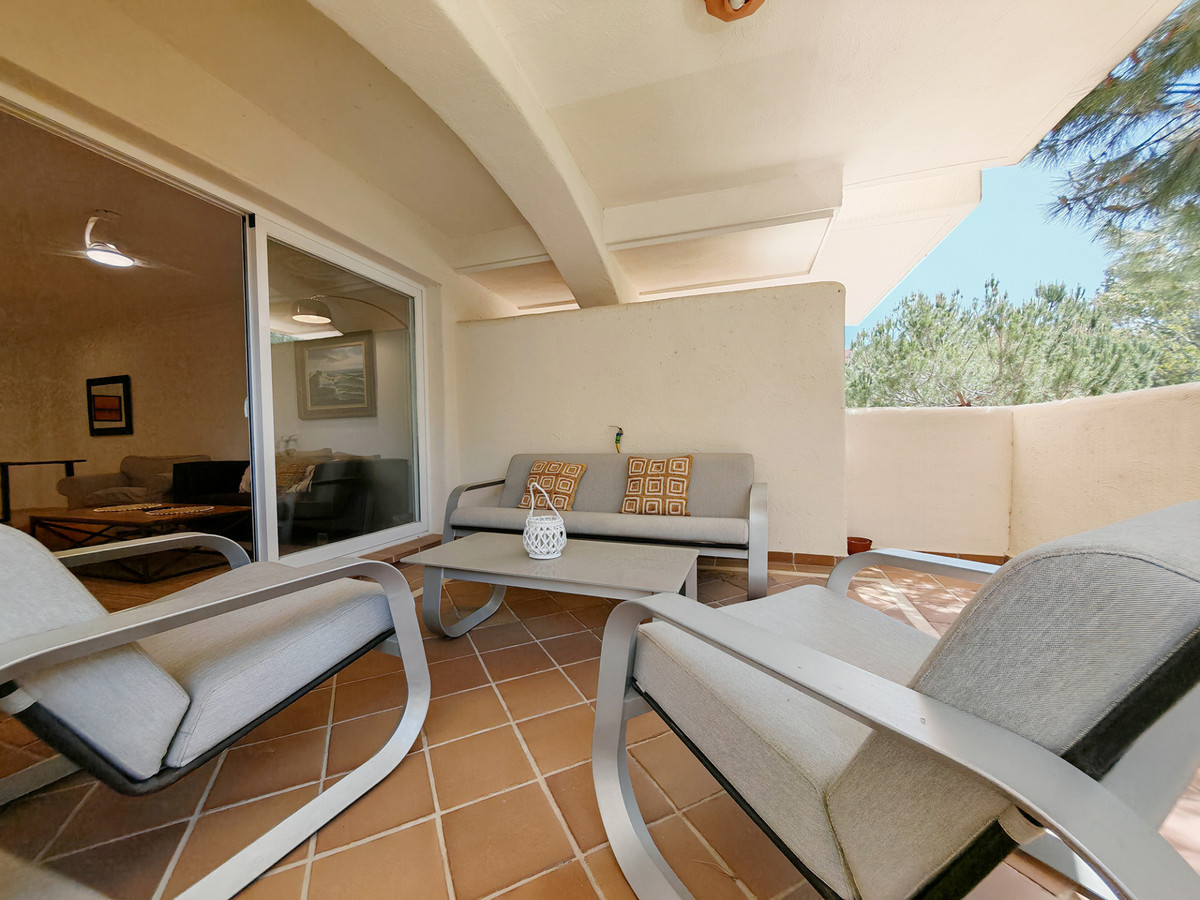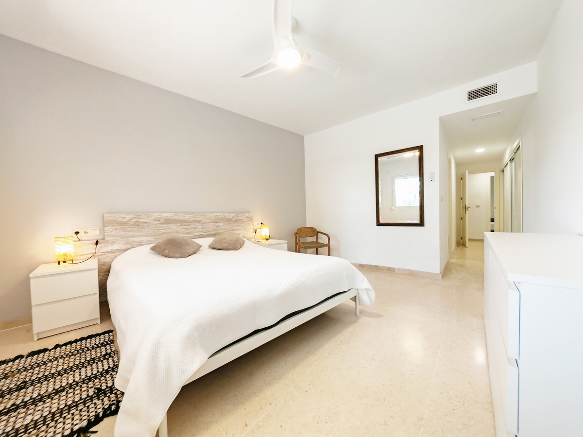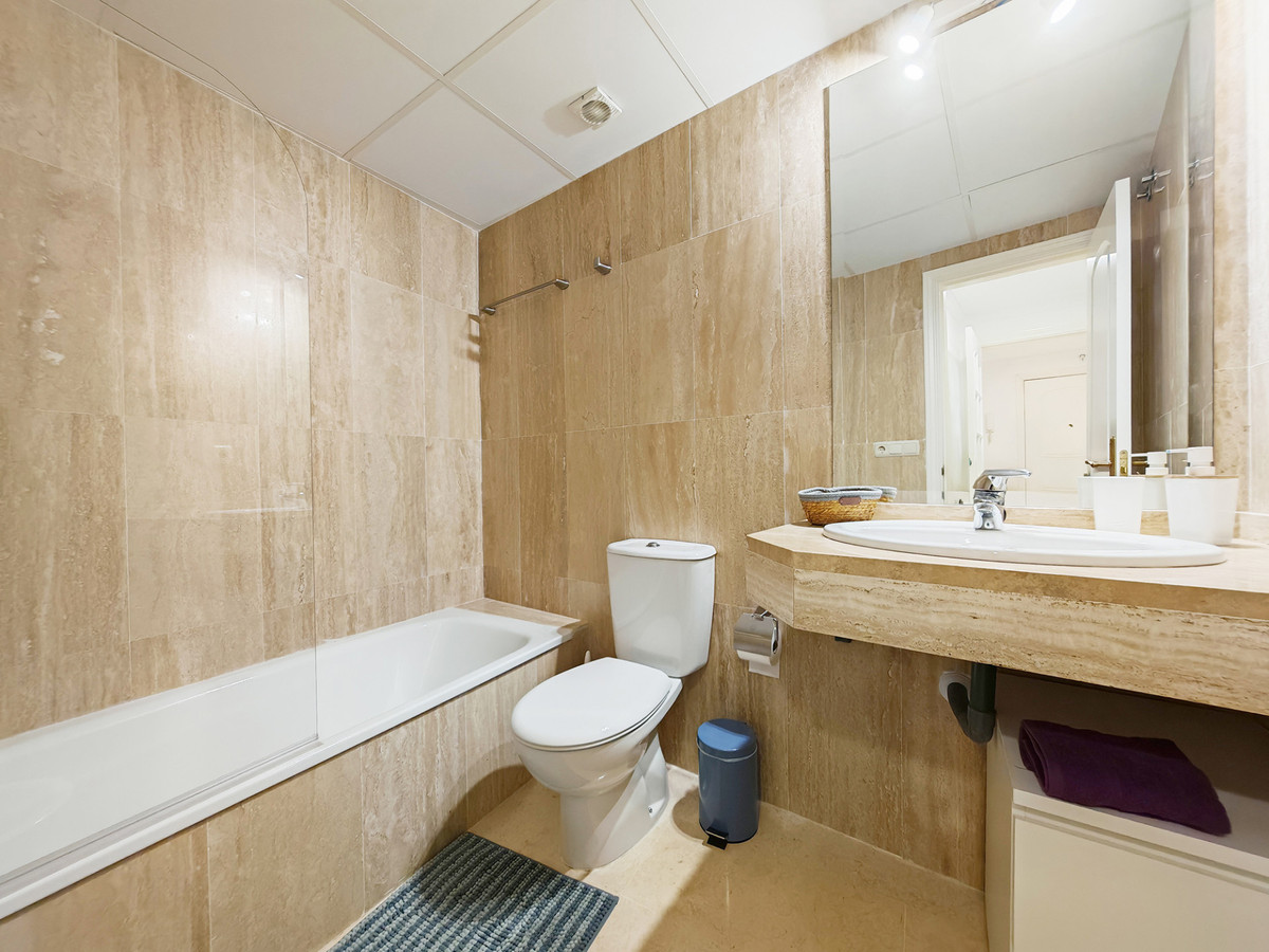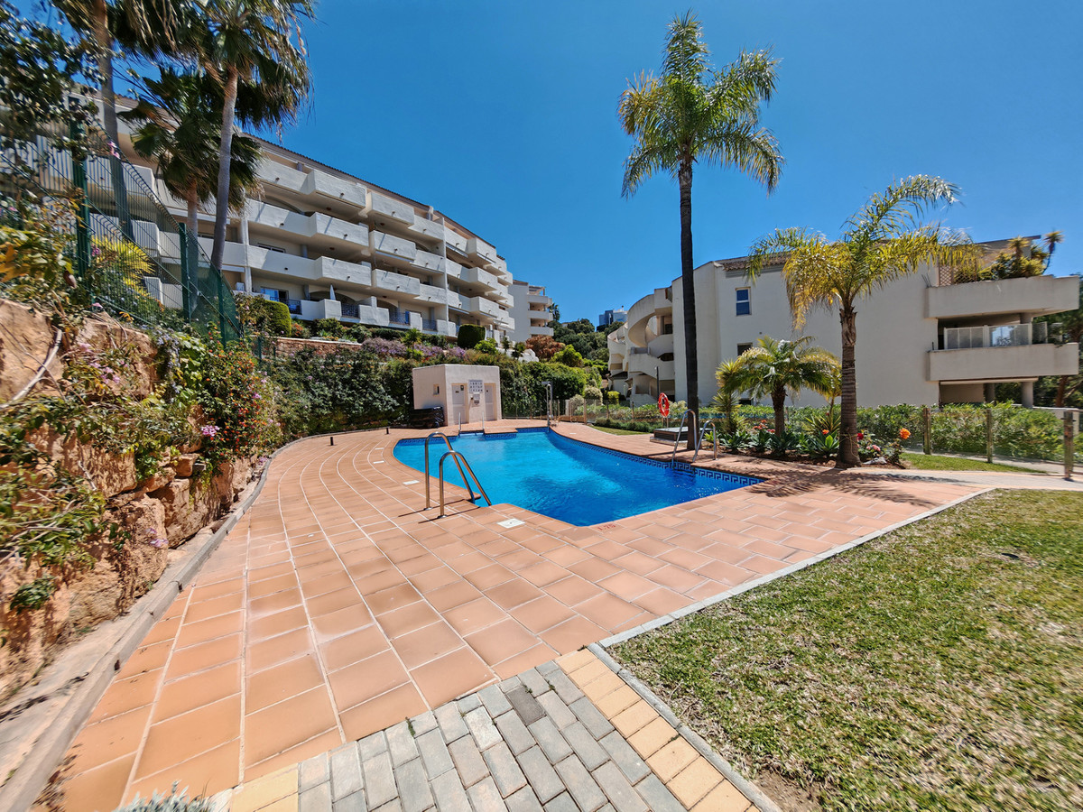 Apartment for sale in Elviria, Marbella with 2 bedrooms, 2 bathrooms, 1 on suite bathroom and with orientation south/west, with communal swimming pool, communal garage (1 parking spaces) and communal garden. Regarding property dimensions, it has 123 m² built and 16.25 m² terrace. Has the following facilities amenities near, air conditioning, fully furnished, fully fitted kitchen, marble floors, private terrace, kitchen equipped, water tank, country view, indoor pool, laundry room, internet - wi-fi, covered terrace, fitted wardrobes, gated community, lift, close to sea / beach, close to golf, balcony, excellent condition, ceiling cooling system, close to town, close to schools, surveillance cameras, inside golf resort and close to restaurants.