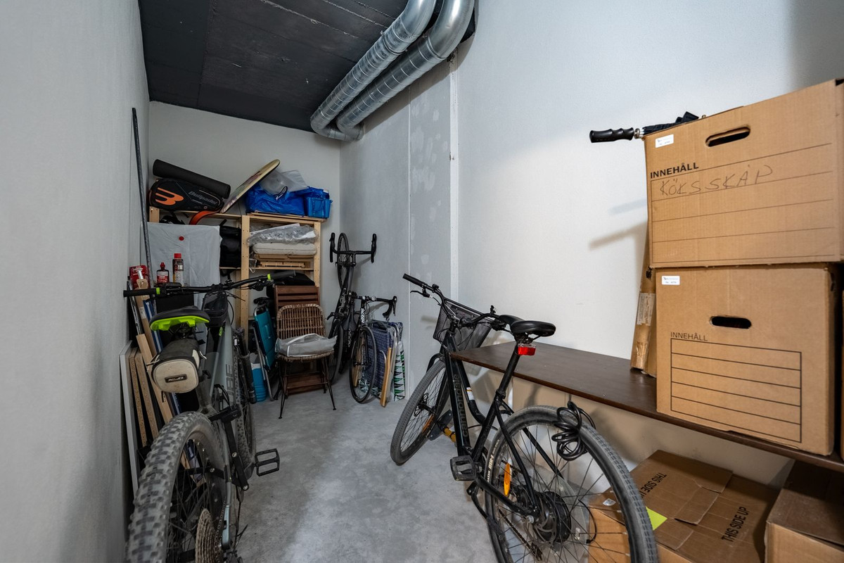 - Stort förråd – idealiskt för cyklar, golfutrustning eller säsongsförvaring