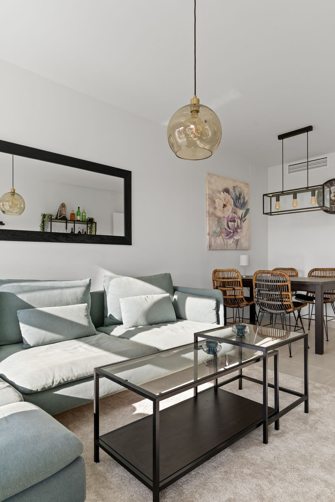 Denna ljusa och välplanerade lägenhet med tre sovrum och två badrum är belägen i början av det exklusiva området La Mesa i Estepona. Bostaden ligger högt i komplexet, vilket ger både utsikt och avskildhet. Här bor du med eftermiddagssol på balkongen, moderna bekvämligheter och ett läge som kombinerar lugn med närhet till stadens puls.