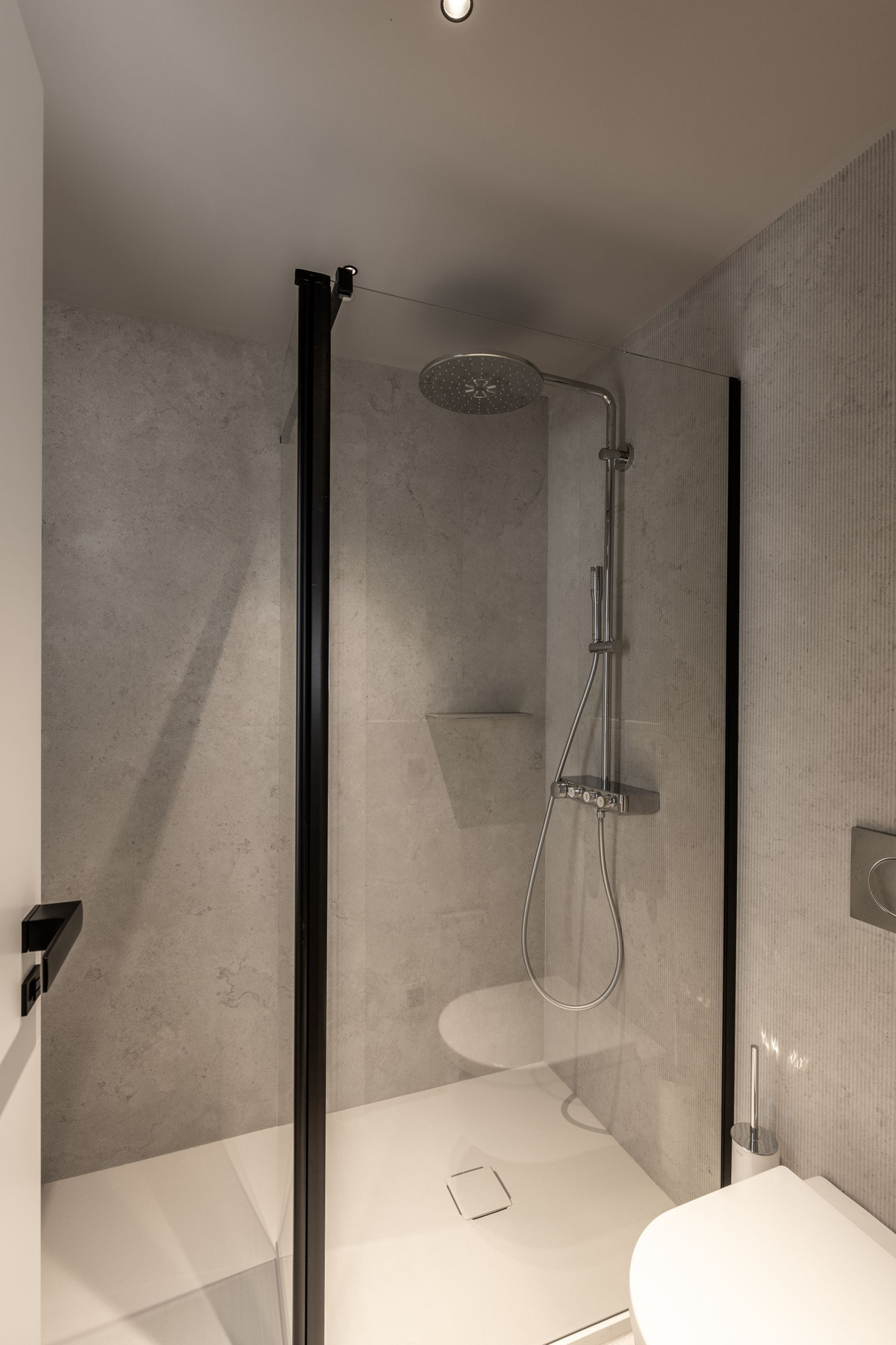 Inside, the design is thoughtful and refined. Large windows flood each floor with natural light, while high-quality finishes bring a sense of permanence and elegance. The terrace becomes an outdoor living room, perfect for long evenings or quiet mornings.