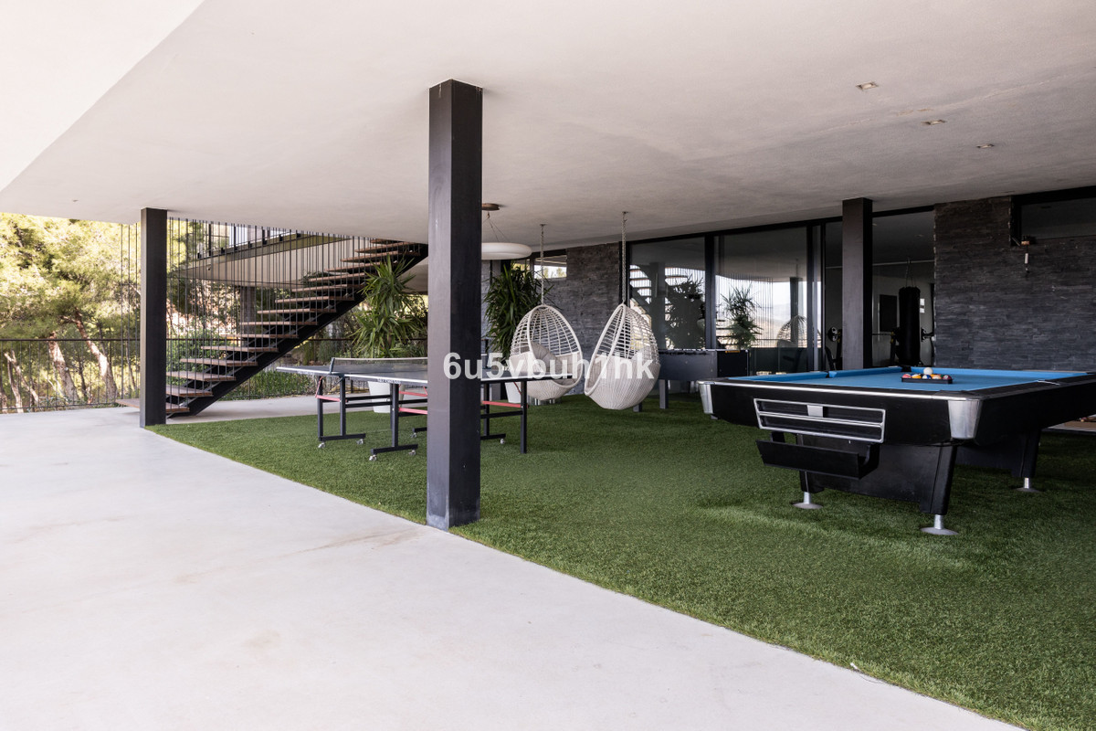 En av de utmärkande funktionerna i denna villa är utsikten över den stora poolen från insidan som erbjuder fullständig avskildhet och havsutsikt med gott om plats för stora fester eller familjer. Var du än vandrar på den täckta utsiktsplattformen som omger villan, kommer du att kunna njuta av den spektakulära utsikten och lugnet.