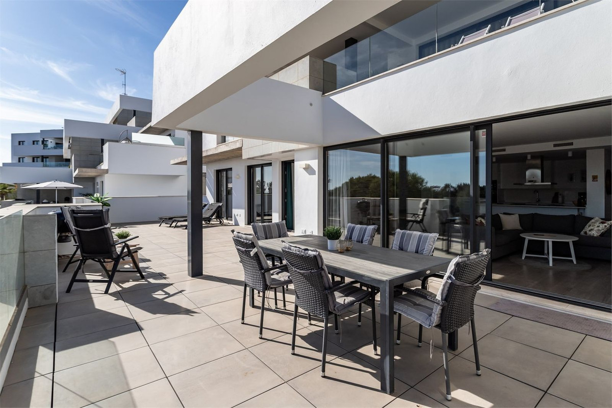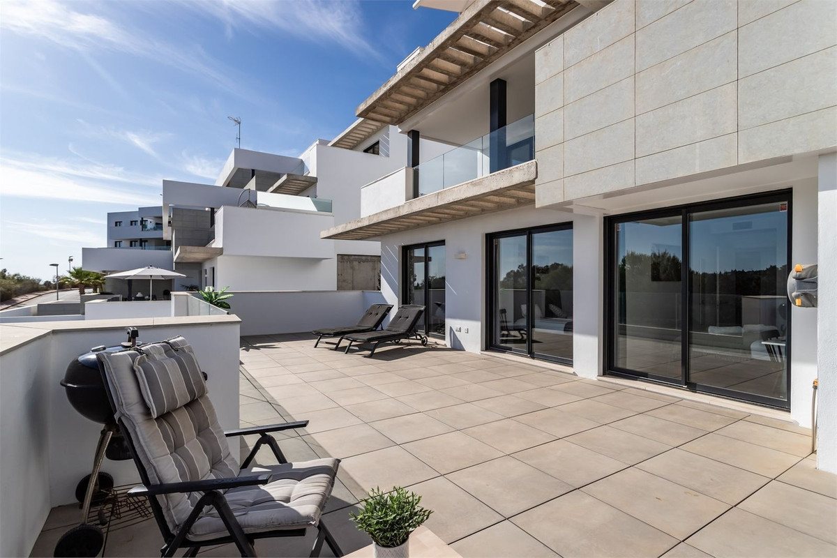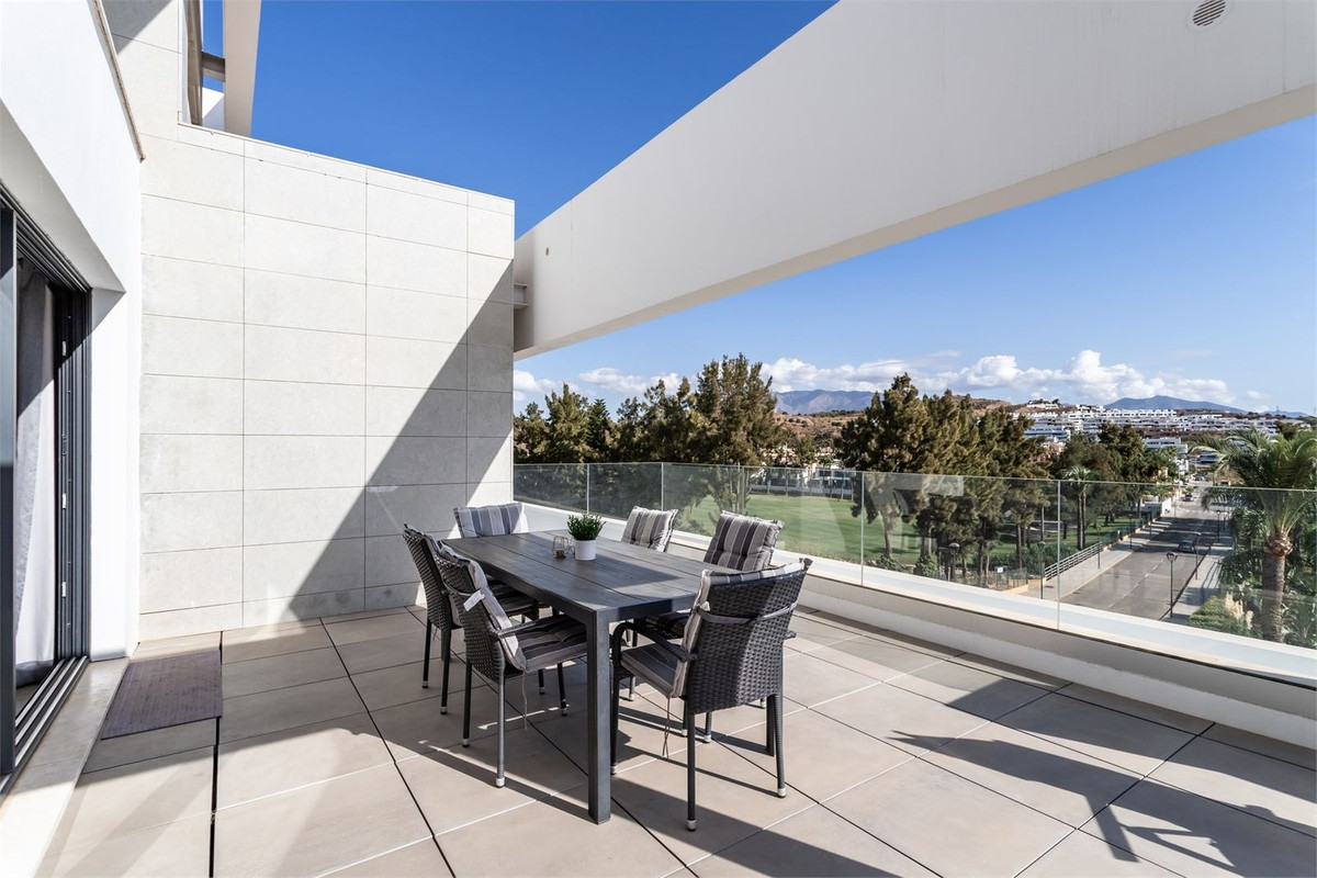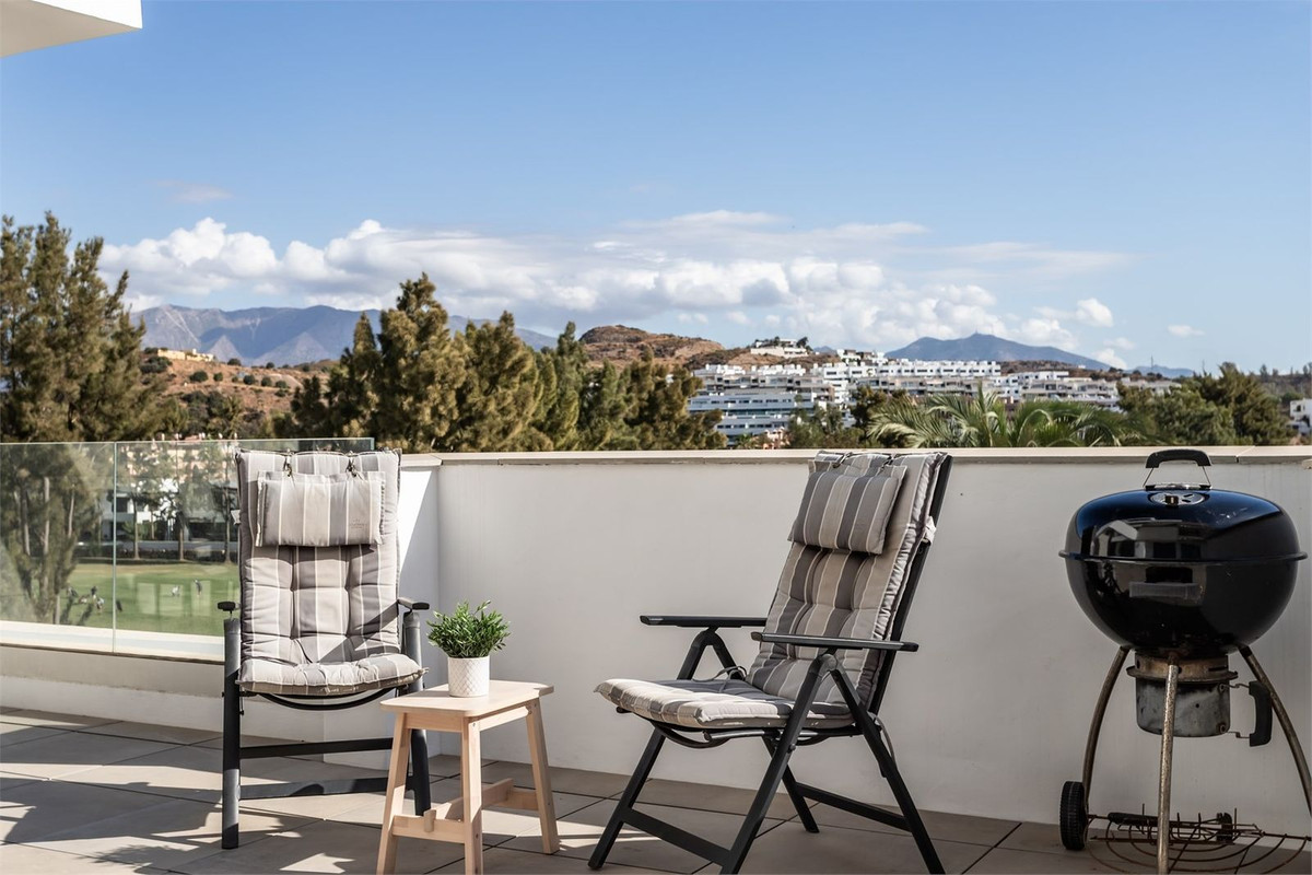 Denna moderna lägenhet erbjuder en genomtänkt planlösning med tre rymliga sovrum, varav huvudsovrummet har eget ensuite-badrum. Från samtliga sovrum finns direkt utgång till den generösa terrassen om 80 kvm, där du kan njuta av morgonsolen och den rofyllda utsikten över golfbanan och den lummiga grönskan.