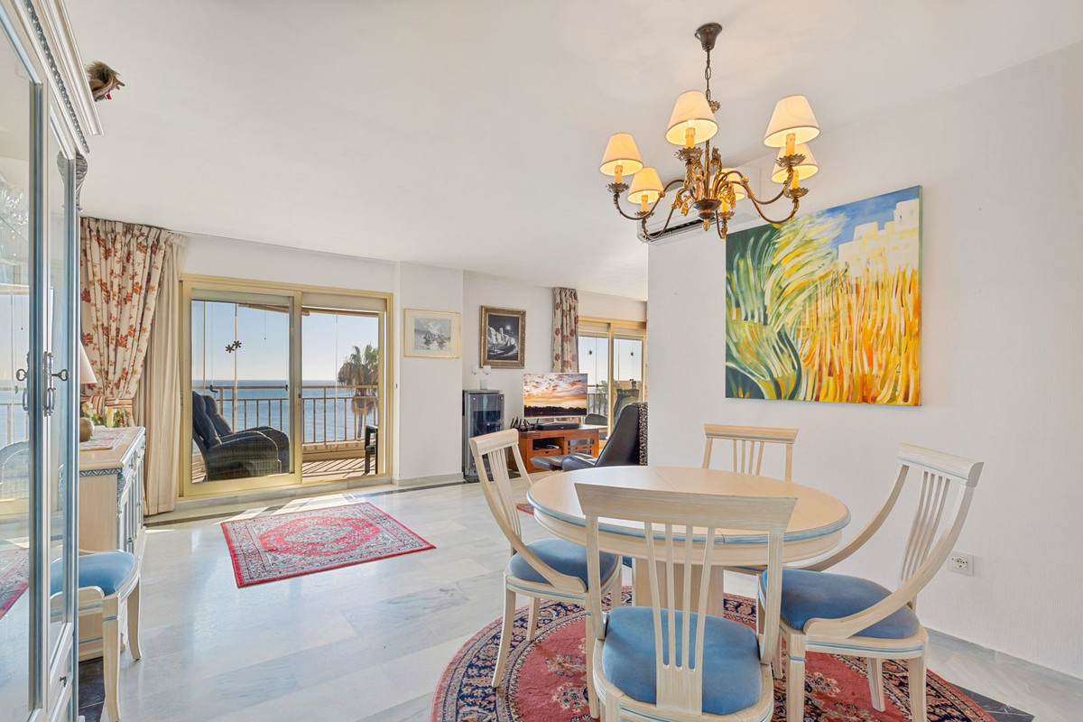 Hörnlägenhet på strandpromenaden i västra delen av Fuengirola. Det härliga sydvästläget gör att man kan njuta av solen hela dagen på den 47 m2 stora terrassen.