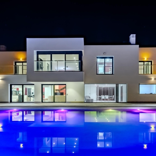 On the upper floor (130 m²) there are three bedrooms, two bathrooms, a fully equipped kitchen, and a north-facing open terrace, perfect for enjoying fresh air year-round. On the ground floor (160 m²), it features three bedrooms, three bathrooms, two kitchens (one open and one closed) and a glazed terrace also facing north.