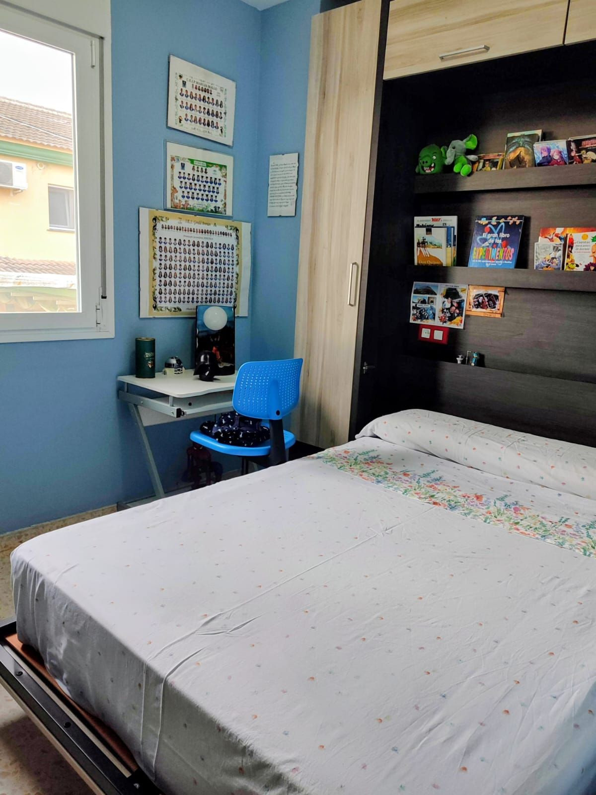 The main level offers a bright open-plan living area with a modern fully fitted kitchen and a spacious living-dining room. On this floor, there is also a comfortable bedroom with built-in wardrobes and a complete bathroom with a shower, perfect for guests, elderly family members, or use as a home office.