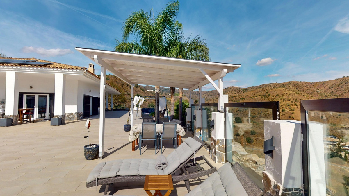 This charming villa in Moclinejo combines comfort, spaciousness and stunning views of the sea and the surrounding mountains. Located on a large plot with a beautiful garden, it offers a peaceful environment to fully enjoy nature and the Mediterranean climate. Outside we find a beautiful swimming pool, an outdoor bathroom and a summer kitchen, ideal for spending pleasant moments outdoors with family and friends. Inside, the villa stands out for its spacious layout: a large fully equipped independent kitchen, a bright and cozy living room, and a full bathroom. Another room is currently used as an office, but can easily be converted into an additional bedroom. The sleeping area has two bedrooms, another bathroom with bathtub and shower, and a master bedroom with direct access to the terrace and garden, as well as a large dressing room. The property offers convenient access, parking space within the plot and all essential amenities within walking distance. Thanks to its excellent orientation, enjoy natural light throughout the day and beautiful sunsets from the main terrace. In addition, its location is unbeatable: the beach is just 15 minutes away, the A7 motorway is 10 minutes away, and Malaga airport is approximately 30 minutes away, which guarantees an excellent connection with the entire Costa del Sol. An ideal home for those looking for charm, spacious outdoor areas and spectacular views in one of the most beautiful regions of the Axarquia. We would be happy to introduce you to this dream property soon, either in person or via a virtual tour. Because this world is unique, just like our Axarquía. In Andalusia. On the Costa del Sol. Here, on the sunny side of life.