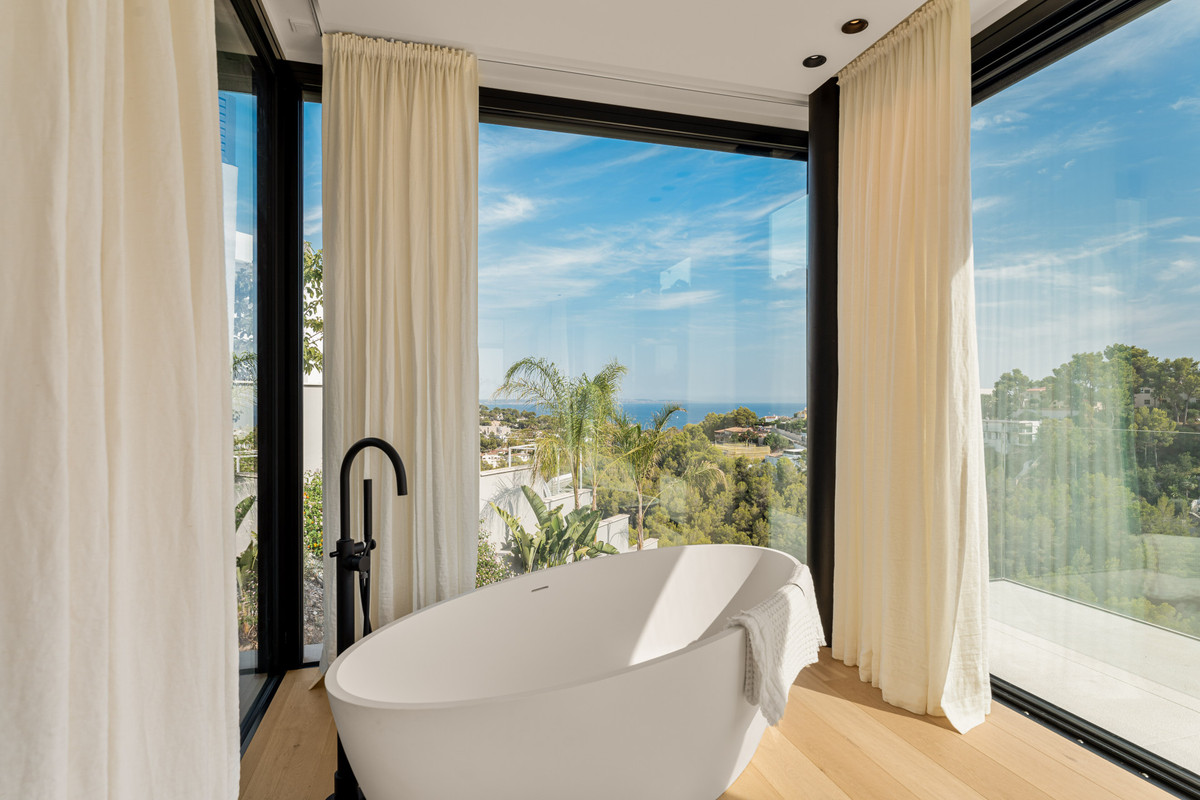 Belägen på sluttningen ovanför Portals Nous är Costa d'en Blanes känd för sina lyxvillor, sydvända läge och fantastiska naturliga omgivningar. Invånarna njuter av en exklusiv livsstil nära både stillsamma landskap och livfulla bekvämligheter. Villan får rikligt med solljus hela dagen och inom några minuter når man marinan Puerto Portals med sina gourmetrestauranger, designbutiker och kosmopolitiska sociala miljö. För naturälskare erbjuder de närliggande kullarna och kustlederna rofyllda vandringsrutter och utomhusupplevelser.
