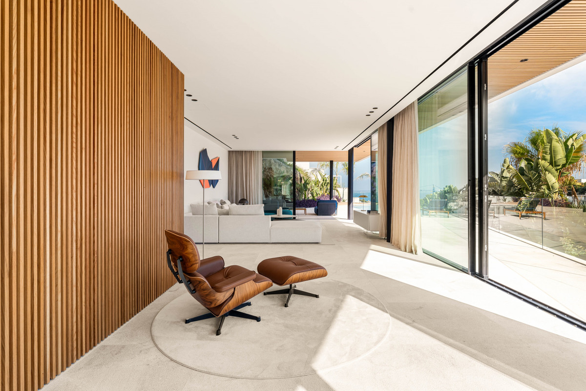 Designen av Villa Zafiro balanserar sofistikering och praktisk funktion. Bottenvåningen kretsar kring ett rymligt vardagsrum och matsal i öppen planlösning med direkt tillgång till en täckt terrass och en saltvatten-infinitypool, vilket skapar sömlöst inomhus- och utomhusliv. Köket är utrustat med högklassiga Miele-apparater och naturstensytor, medan stora fönster ramar in spektakulära vyer.