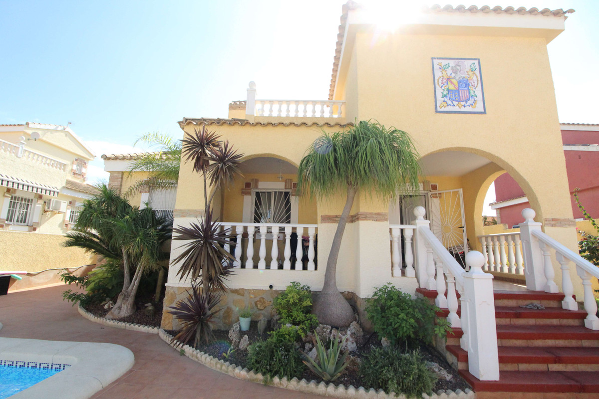 This beautifully presented detached villa Torreon model, has a large garden with mature plants and private swimming pool. There is an external shower and a garden shed. As you come up to the property, you have a nice size front porch.  On the main floor you will find the living room with AC unit, dining area next to the separate kitchen which is equipped with oven, hob, fridge/freezer and washing machine.  The kitchen has a back door with access to garden. This floor also has 2 bedroom.  The main bedroom has a double bed, AC unit, built in wardrobes and an on suite with shower/tub.  The second bedroom has a single bed, built in wardrobe and a small storage area, as well as AC.  There is a second bathroom with a shower.