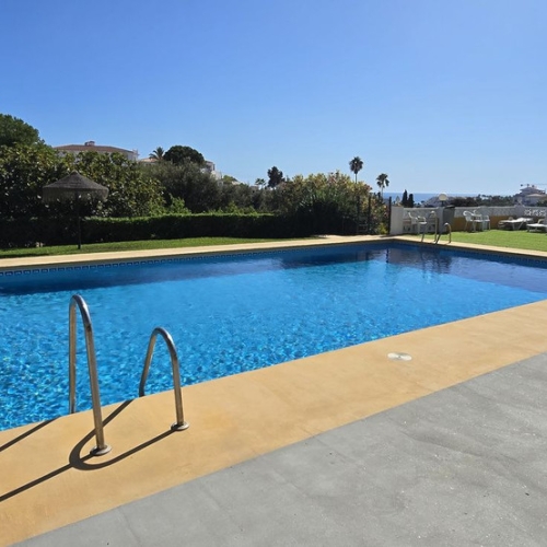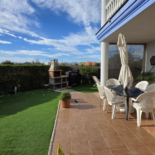 One-level apartment consisting of 3 double bedrooms, together with 3 bathrooms a large L shape terrace with the bonus of half being covered and the other half open to be able to enjoy the sun all day long which you has limited sea views. Property comes with hot/cold air conditioning, underground parking space, lift to the apartment, marble floors throughout & is being sold fully furnished. Well-kept community gardens, gated complex with a community pool. The apartment is situated in el Chaparral, located near the shops and public transport, walking distance to the beach. With a little bit of tender loving care this property could be made into a beautiful family home. Well worth a viewing, keys in the office!