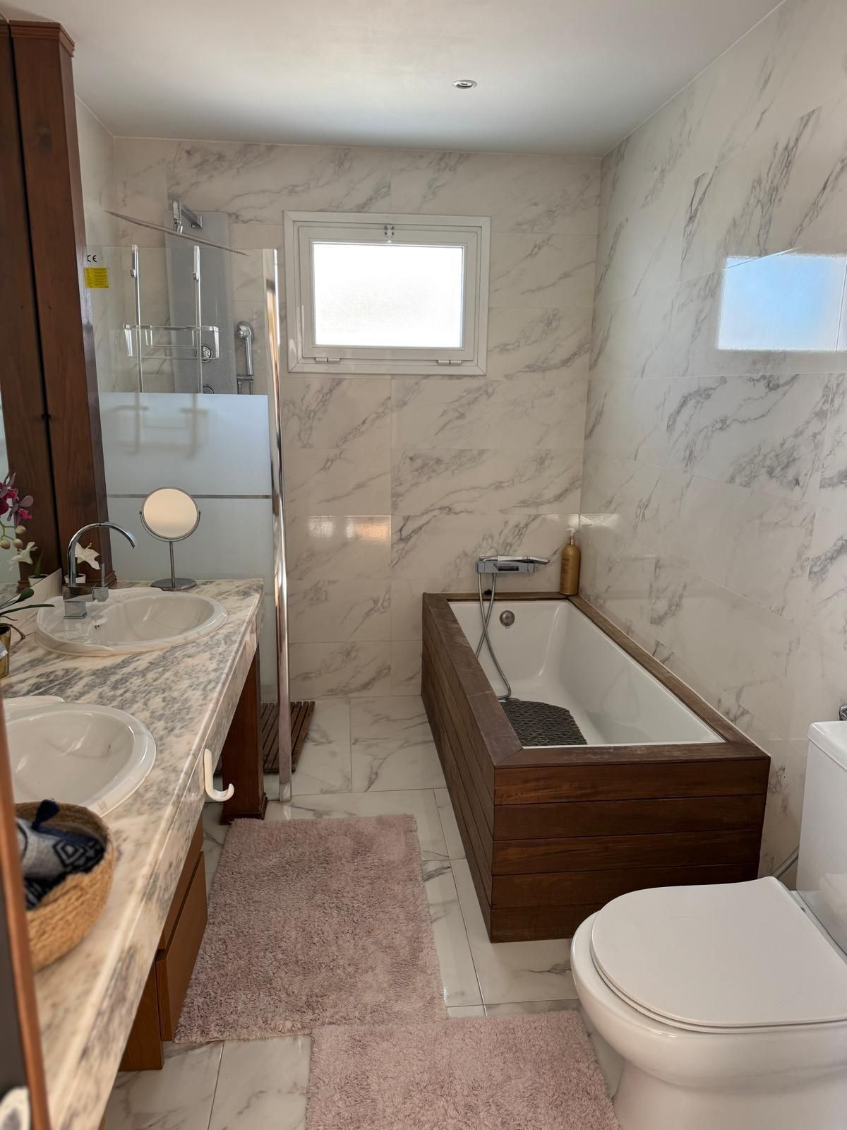 Outside, the villa boasts a private garden with a swimming pool, a chill-out area, and large terraces — perfect for enjoying the Mediterranean climate all year round.
