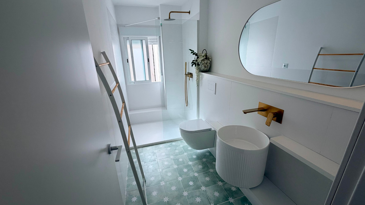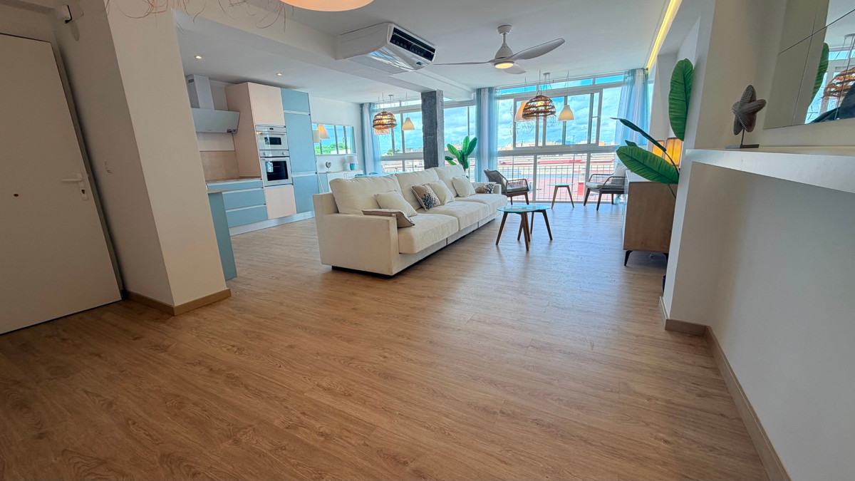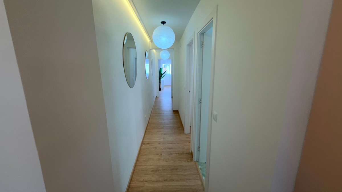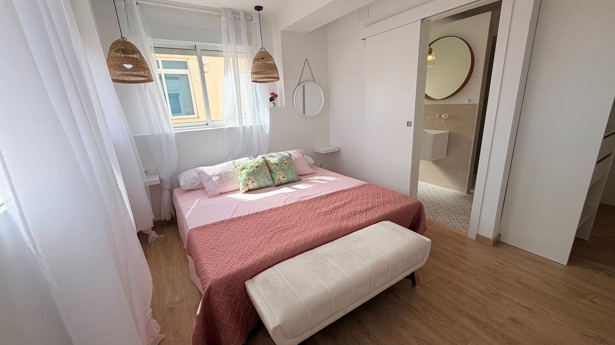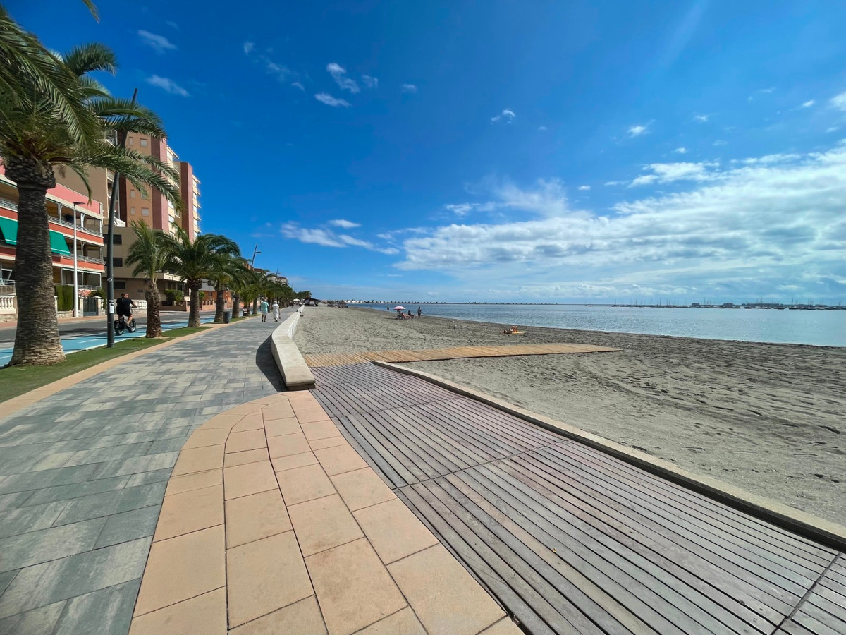 This Reformed, Three Bedroom, Fourth Floor Apartment in Lo Pagan, is located just 100 metres from a lovely stretch of beach, in an area well known for its natural mud baths and only a 5 minute walk to the marina, with a great variety of café bars and eating places on the doorstep. Positioned on the borders of Santiago de la Ribera and San Pedro del Pinatar, this superb location also offers easy access to San Javier and the popular Dos Mares shopping centre, just a short drive away. Beautifully renovated by an interior designer in 2025, the apartment boasts a stylish open plan living space with air conditioning and wall-to-wall glazed windows, filling the room with natural light. The modern, open plan fitted kitchen includes a utility area, and the layout features three double bedrooms with built-in wardrobes. The master bedroom enjoys a view to the sea and also benefits from an en suite shower room and a walk-in wardrobe, while a contemporary family shower room completes the interior. The building is serviced by a lift and has access to a municipal pool nearby.\n
