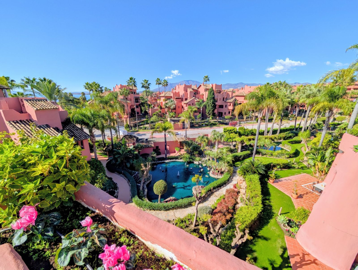 NEW on the market! Stunning Penthouse duplex in exclusive luxury beachfront complex on the New Golden Mile, East Estepona. The property benefits from prominent position within the urbanisation, with breathtaking views towards the Mediterranean sea, Sierra Bermeja mountains and amazing landscaped gardens with lakes, fountains, swimming pools and lush vegetation.