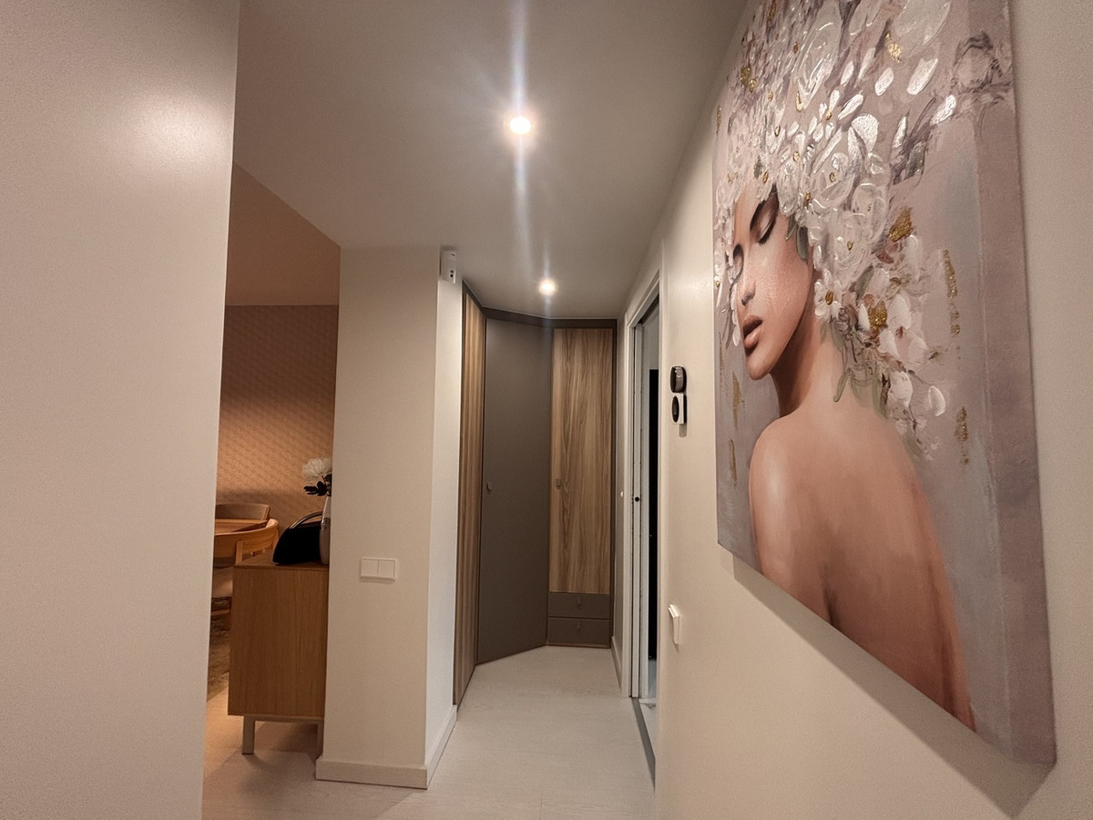 The property comprises 2 double bedrooms and 1 modern bathroom, a bright and spacious lounge-dining area, and a well-equipped kitchen with underfloor heating, water filtration system, and waste disposal unit.