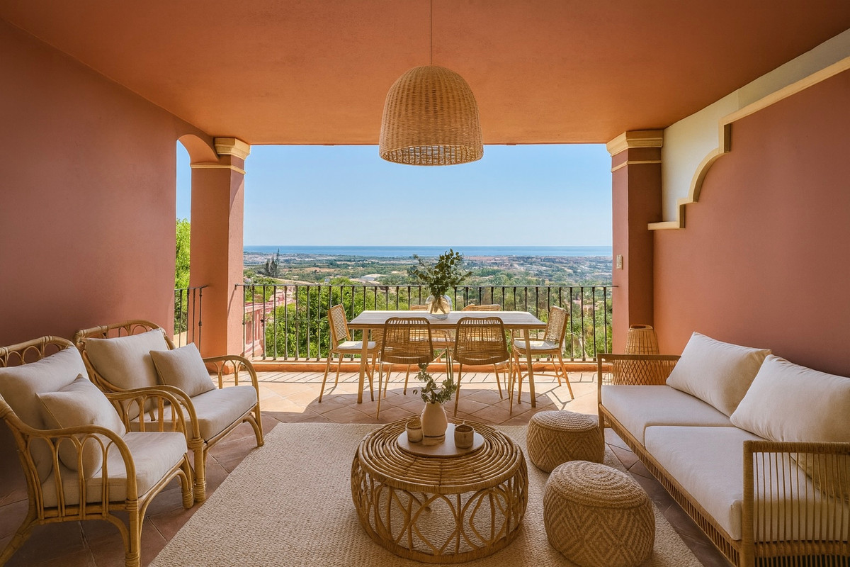 New to the Market!..Open Sea and Marbella Views from the Living RoomApartment in Monte Halcones, BenahavísDiscover this stunning apartment where the first thing you see upon entering is the sea.The living room opens directly onto a spacious south-facing terrace, offering endless panoramic views of the Mediterranean and the Marbella skyline a space where the blue of the sea becomes part of your daily life.With 133 m2 of interior space and a 23 m2 terrace, the property boasts generous proportions, natural light and a highly versatile layout. It features a large living room, two bedrooms with en-suite bathrooms, fitted wardrobes, and an independent kitchen that can be opened up to the living area or transformed into a third bedroom or office.Located in one of the most exclusive and peaceful areas of Benahavís, within a well-kept urbanisation with manicured gardens, two swimming pools and communal parking.In addition, the property includes renders showing how it could look after a renovation or update, helping you to visualise its full potential.A unique property with truly captivating views.Ideal as a main residence or second home on the Costa del Sol.The abbreviated information document is available to you. Expenses: Taxes (ITP or VAT+AJD) + Notarial and registration expenses.ERE
