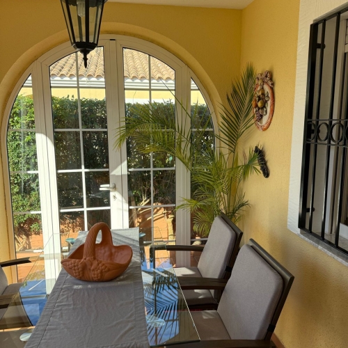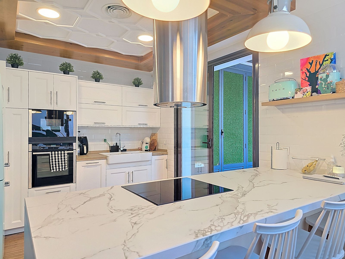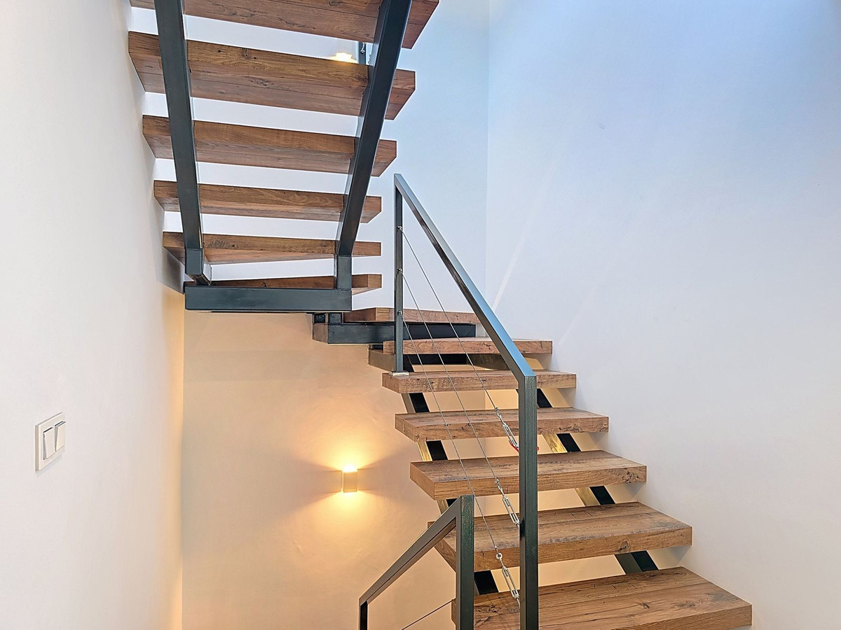 Huset är rymligt och modernt, utformat för att ge ljus och rymd alla möjligheter. Det öppna vardagsrummet med sina höga tak känns inbjudande och lyxigt, en plats där du omedelbart kan koppla av. Med fem sovrum och fyra badrum erbjuder huset alla bekvämligheter för en stor familj, extra gäster eller den perfekta semesterbostaden. Inuti hittar du en mysig uteplats som känns som en lugn oas; på taket väntar solariet, med panoramautsikt över byn, omgivningarna och till och med den majestätiska Sierra Nevada.