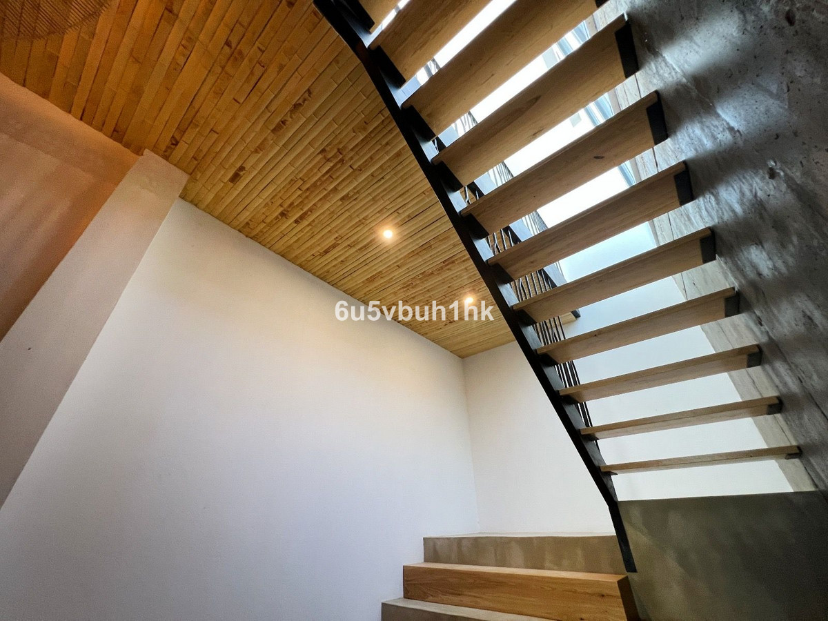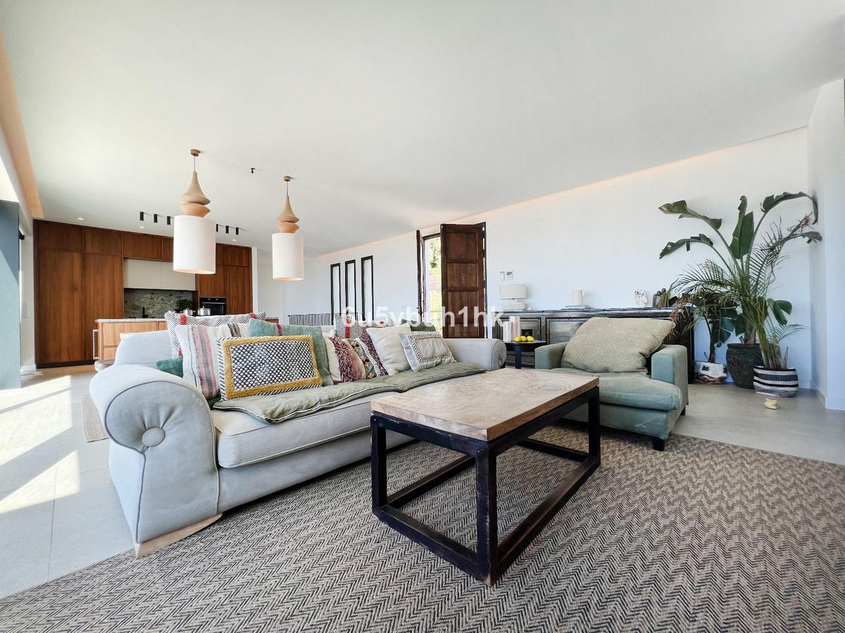 The main level features three elegant bedrooms, including a stunning master suite with its own bathroom, plus two additional bedrooms sharing a full bathroom. The open-plan kitchen, modern and bright, flows seamlessly into the living area and out onto a spacious terrace overlooking the Strait. From here, the views are simply unrivalled: the sea, Africa, and the unmistakable atmosphere of El Cuartón can be enjoyed from every angle.