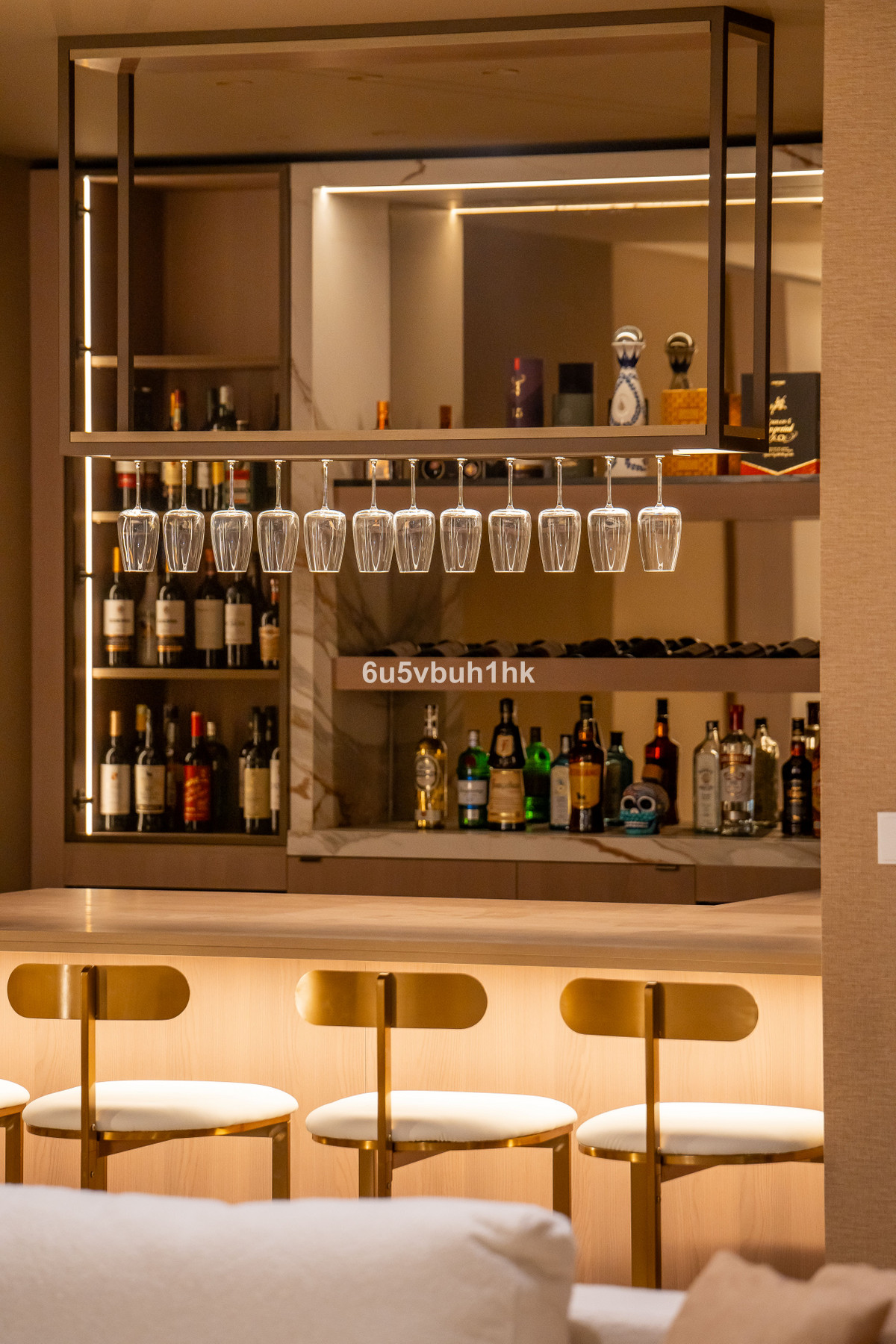 Nedre våningsplanet är utformat för fritid och underhållning: här finns en stilfull baravdelning, en bekväm lounge/hemmabio och två rymliga sovrum, vardera med eget badrum en suite – perfekt för familj eller gäster.