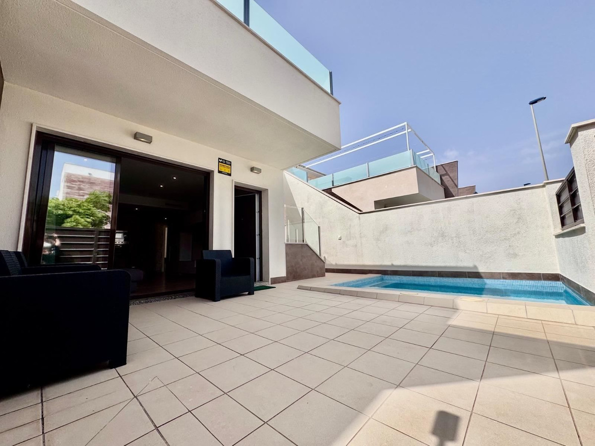 Välkommen till ett radhus som förkroppsligar det bästa av modernt boende på Costa Blanca. Med en generös boyta på 101 kvm bjuder bostaden på genomtänkt planlösning och härliga ljusinsläpp som gör varje rum inbjudande och hemtrevligt.