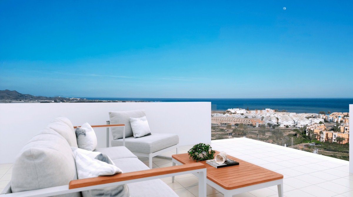 Detta nya projekt ligger på en privilegierad plats på en kulle med utsikt över Medelhavet. Alla bostäder har rymliga terrasser med spektakulär östlig utsikt, där du kan uppleva fantastiska soluppgångar. Bara 5 minuters promenad bort finns mer än 7 km naturliga sandstränder. På bara 10 minuter kan du njuta av ett stort urval av restauranger, barer, stormarknader, butiker och sportområden – perfekt för trevliga eftermiddagar med familj och vänner. För de små finns Almerías största vattenpark bara 10 minuters promenad bort. Omgivet av charmiga städer som Mojácar och Vera, där höghastighetståget AVE snart kommer att anlända och koppla området till Spaniens huvudstad.
