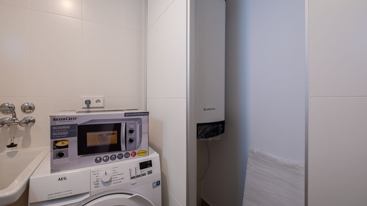 The second bedroom impresses with large windows and direct sea views, giving a sense of tranquility and freedom. The home also includes a practical laundry room with extra storage, and the apartment comes with a garage space and a generous storage room in the garage.