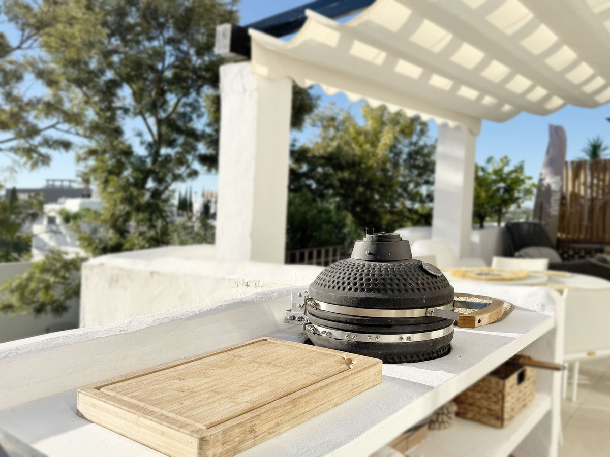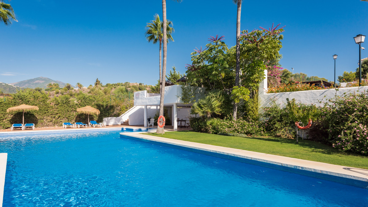 Beläget i ett lugnt bostadsområde i Nueva Andalucias Golf Valley, erbjuder denna lyxiga och eftertraktade gated bebyggelse obefläckade grunder, en stor gemensam pool och en fantastisk sydlig orientering samt fantastisk panoramautsikt över havet.