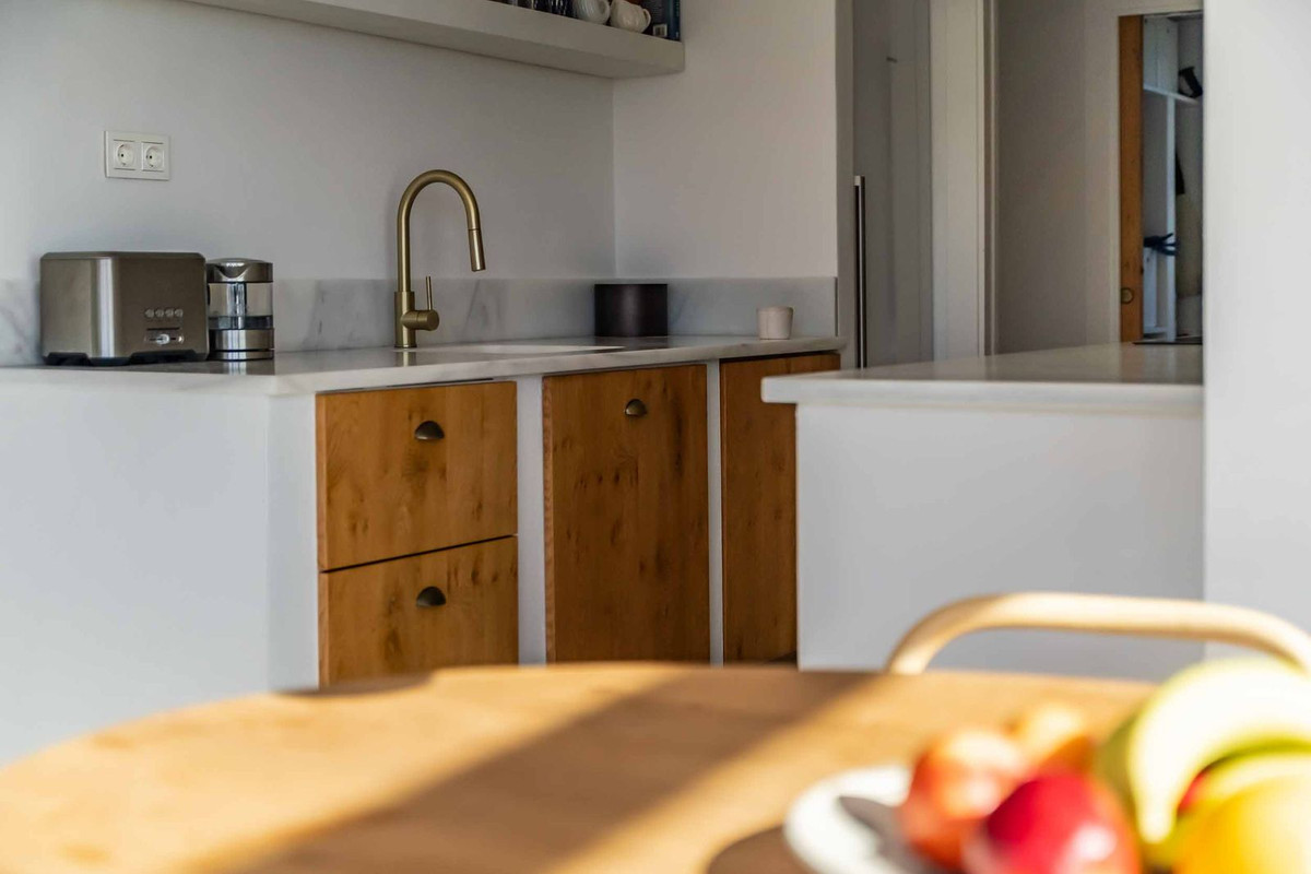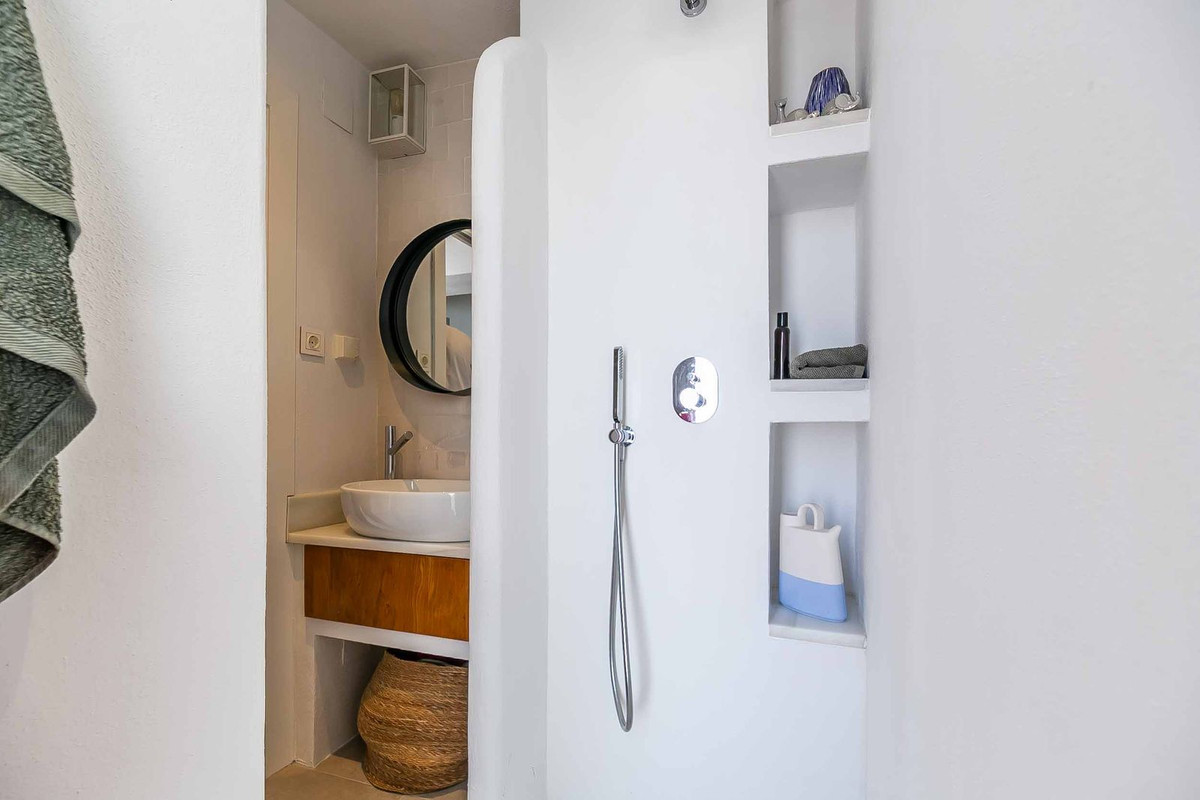 The main house features a bright and spacious living area with large windows and direct access to the sunny terrace, where you can enjoy uninterrupted sea views and the warm Andalusian light throughout the day. The modern, fully fitted kitchen is designed for both aesthetics and functionality, making it ideal for homeowners who enjoy cooking and entertaining.