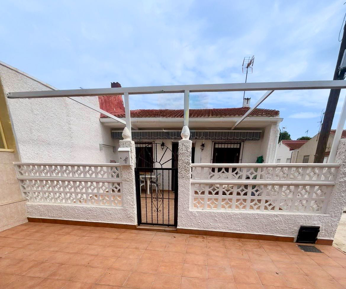 Fastigheten ligger på en lugn, trädkantad gata med öppen utsikt och parkering utanför gatan. Framför huset finns en stor terrass som erbjuder en utmärkt utomhusområde för avkoppling eller att ha gäster, medan den monterade markisen ger skugga under dagens ljusaste timmar.