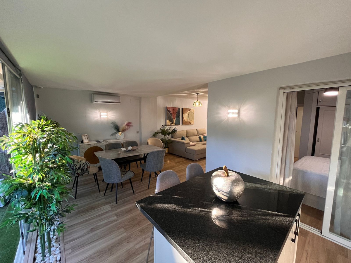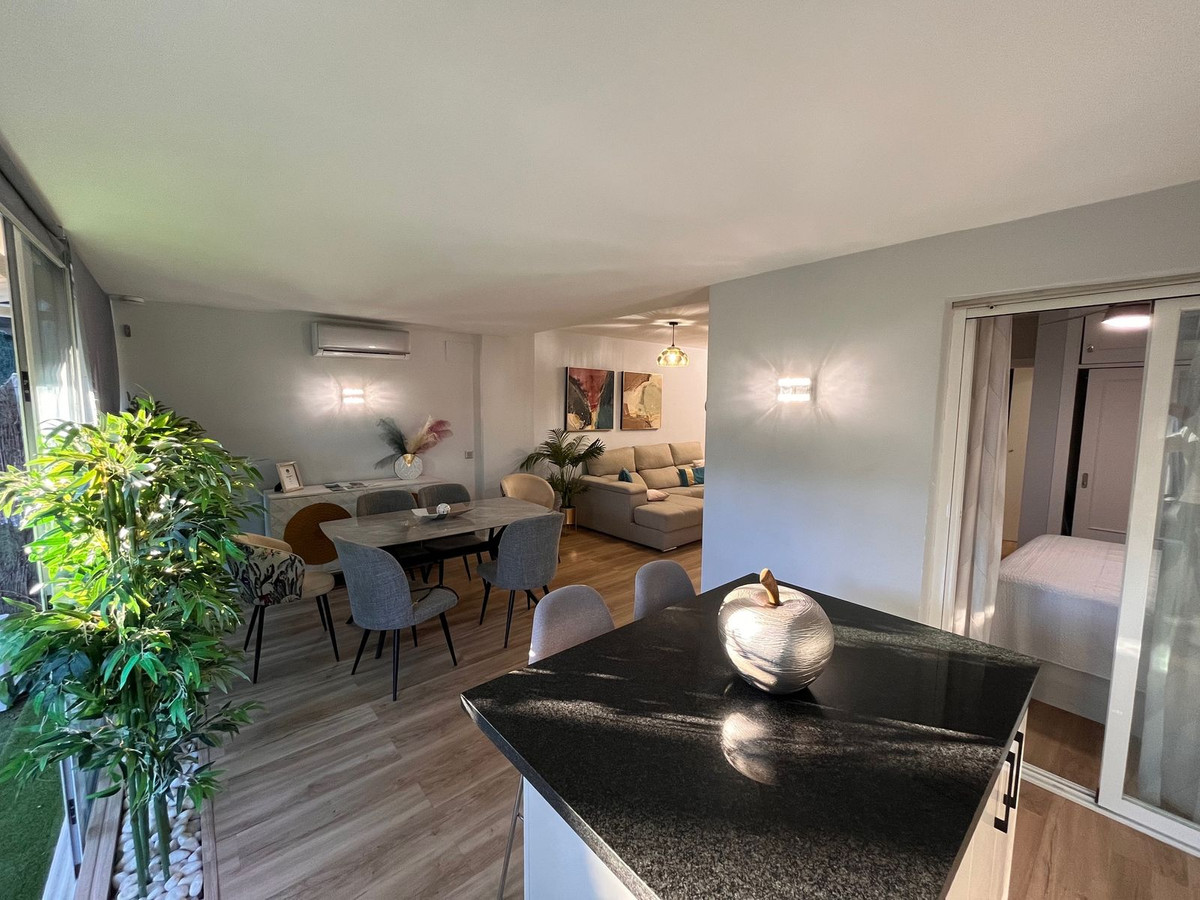 This beautiful fully renovated ground-floor apartment perfectly combines comfort, style, and an unbeatable location. One of its main features is the large private garden, ideal for creating different outdoor areas such as a lounge space, dining area, or a relaxation corner, making the most of the Costa del Sol's exceptional weather all year round.