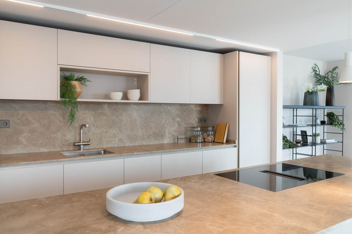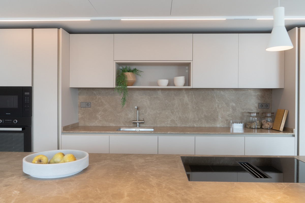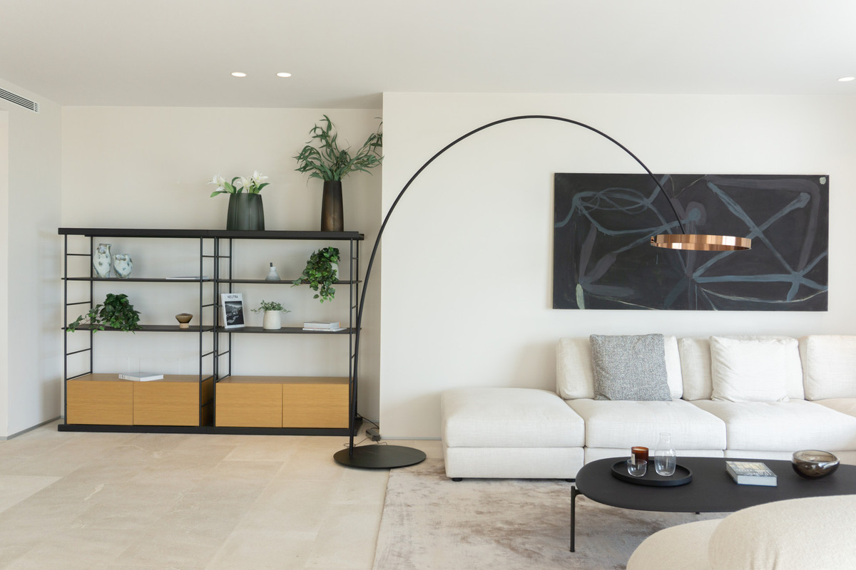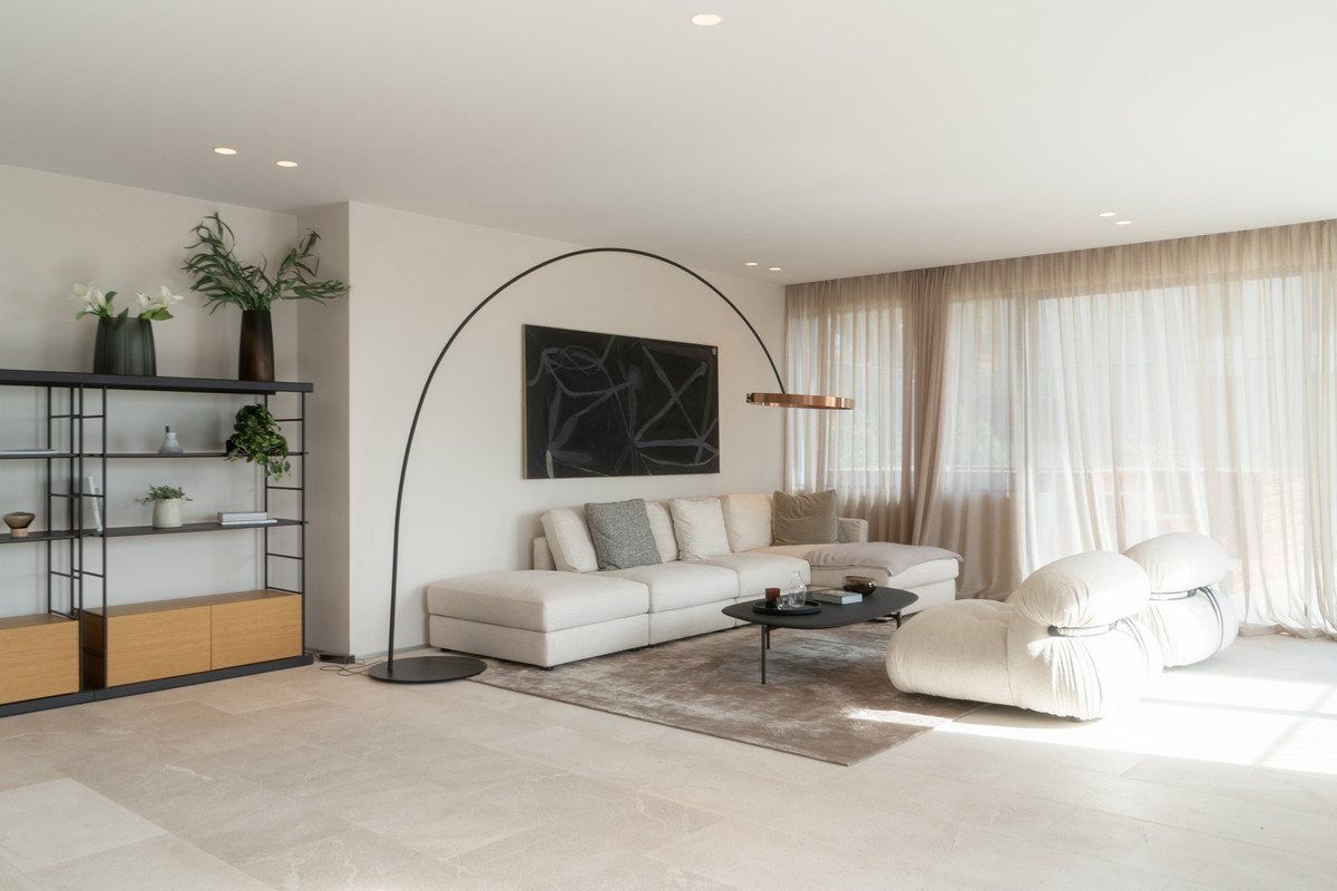 Det huvudsakliga vardagsrummet ansluter till ett skräddarsytt kök utrustat med högpresterande Miele-apparater och anpassade Molteni & Dada-skåp. En granitö fungerar som centrum för både vardag och underhållande. Badrummen fortsätter det moderna designspråket, med mikrocement och marmorfinish som höjer upplevelsen. Integrationen av teknik, inklusive luftvärme, golvvärme och takmonterad luftkonditionering, säkerställer optimal klimatkontroll året runt.