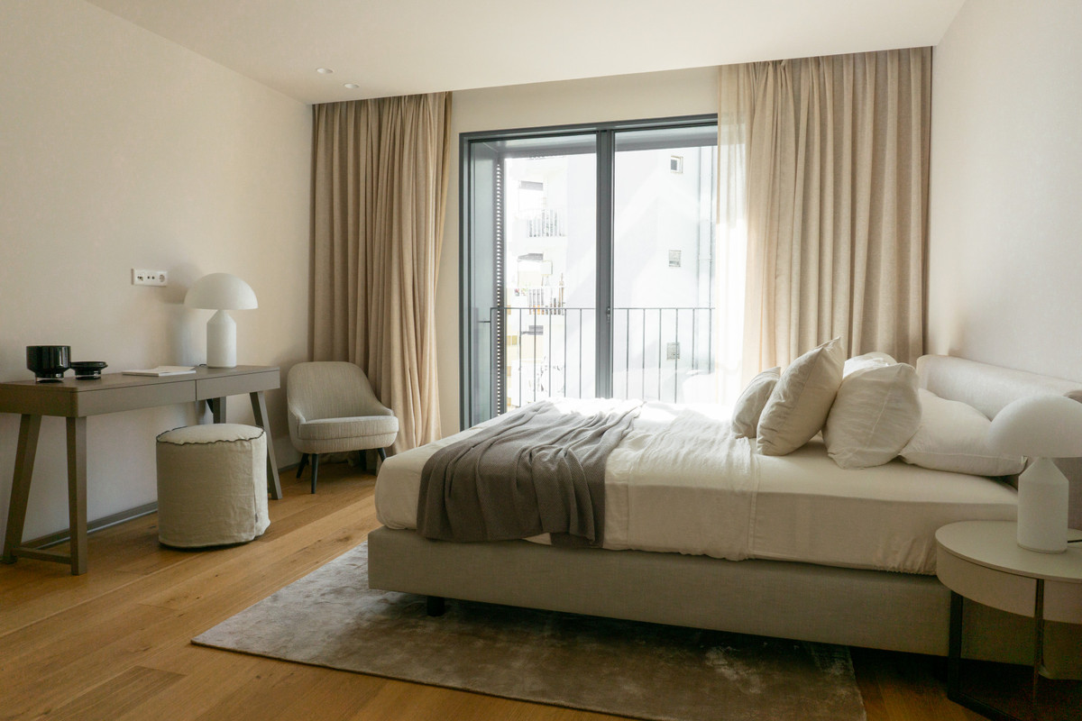 Inuti utvecklas lägenheten över två våningar med en layout avsedd för flytande levande. Tre sovrum ger gott om utrymme för vila och integritet, var och en utrustad med badrum och anpassade garderober. De estetiska lutningarna mot varm minimalism-ek-konstruerad golv, exponerade betongtak och en raffinerad palett av naturliga strukturer ger utrymmet dess lugna, samtida karaktär. Full-höjd fönster öppnar interiörerna till landskapet bortom, sudda linjer mellan inifrån och ut.