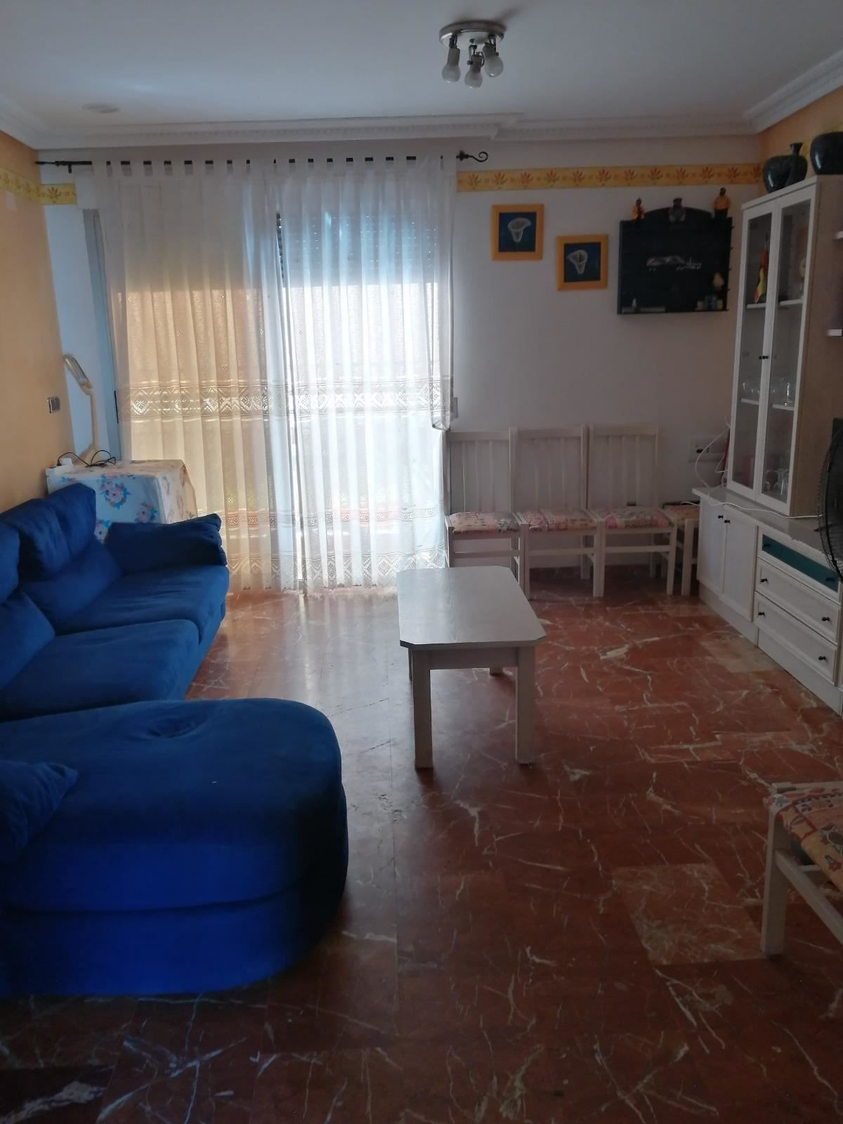 Lägenheten erbjuder tre rymliga sovrum med praktiska inbyggda garderober, två fräscha badrum och ett ljust vardagsrum som öppnar upp mot en balkong – perfekt för morgonkaffet eller en stunds vila i skuggan efter en dag på stranden. Interiören präglas av svala marmorgolv och luftkonditionering som håller temperaturen behaglig året om.