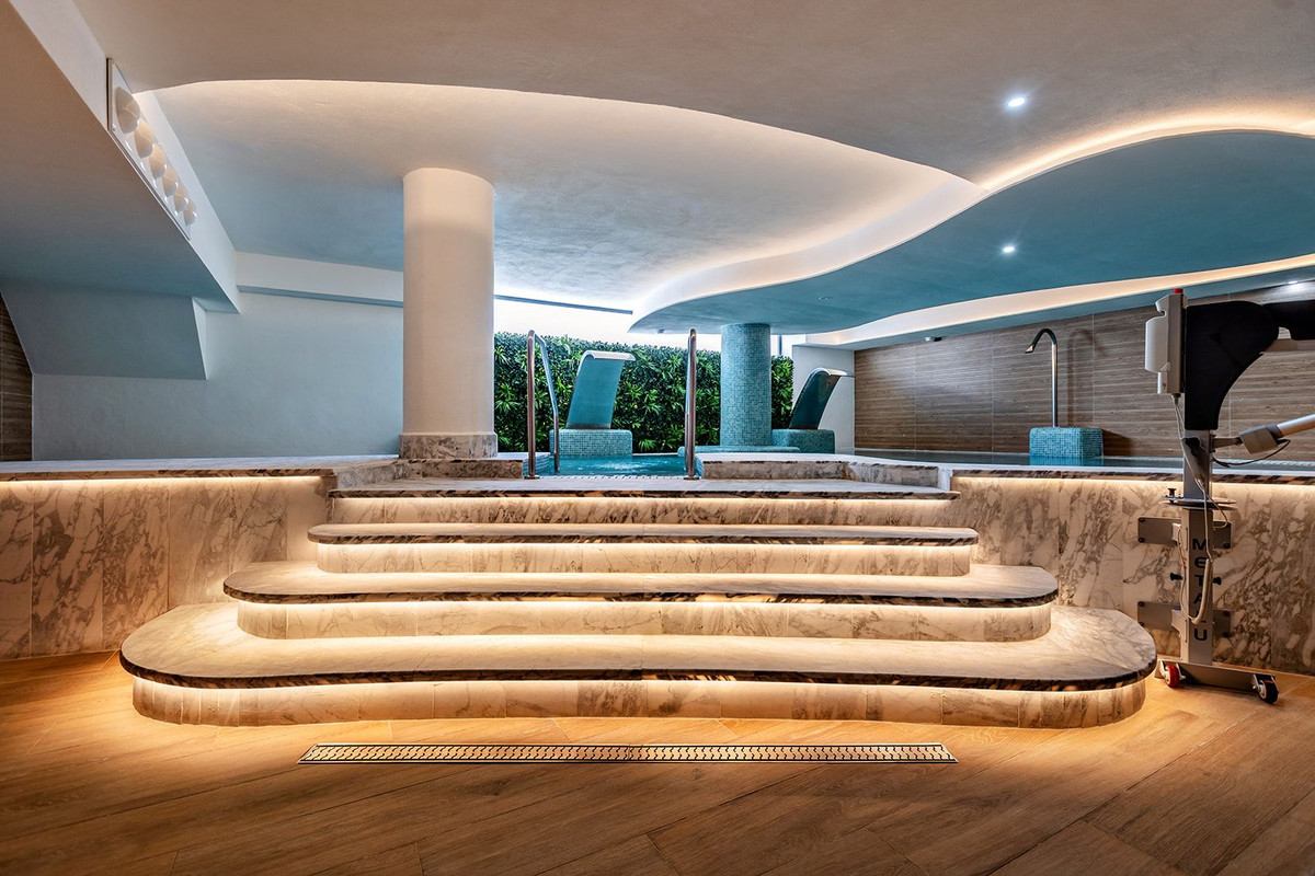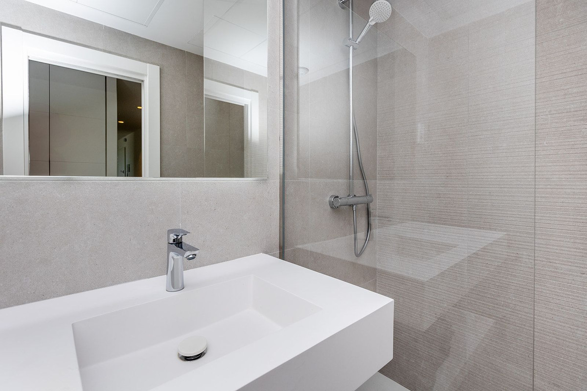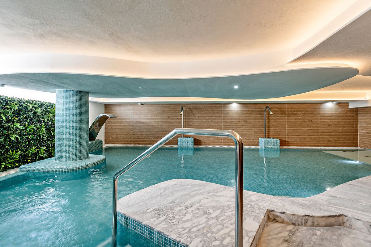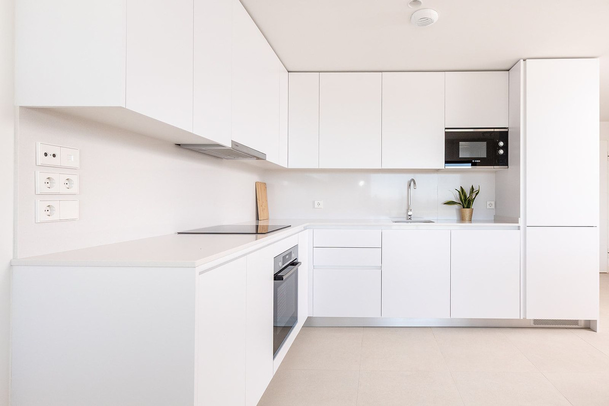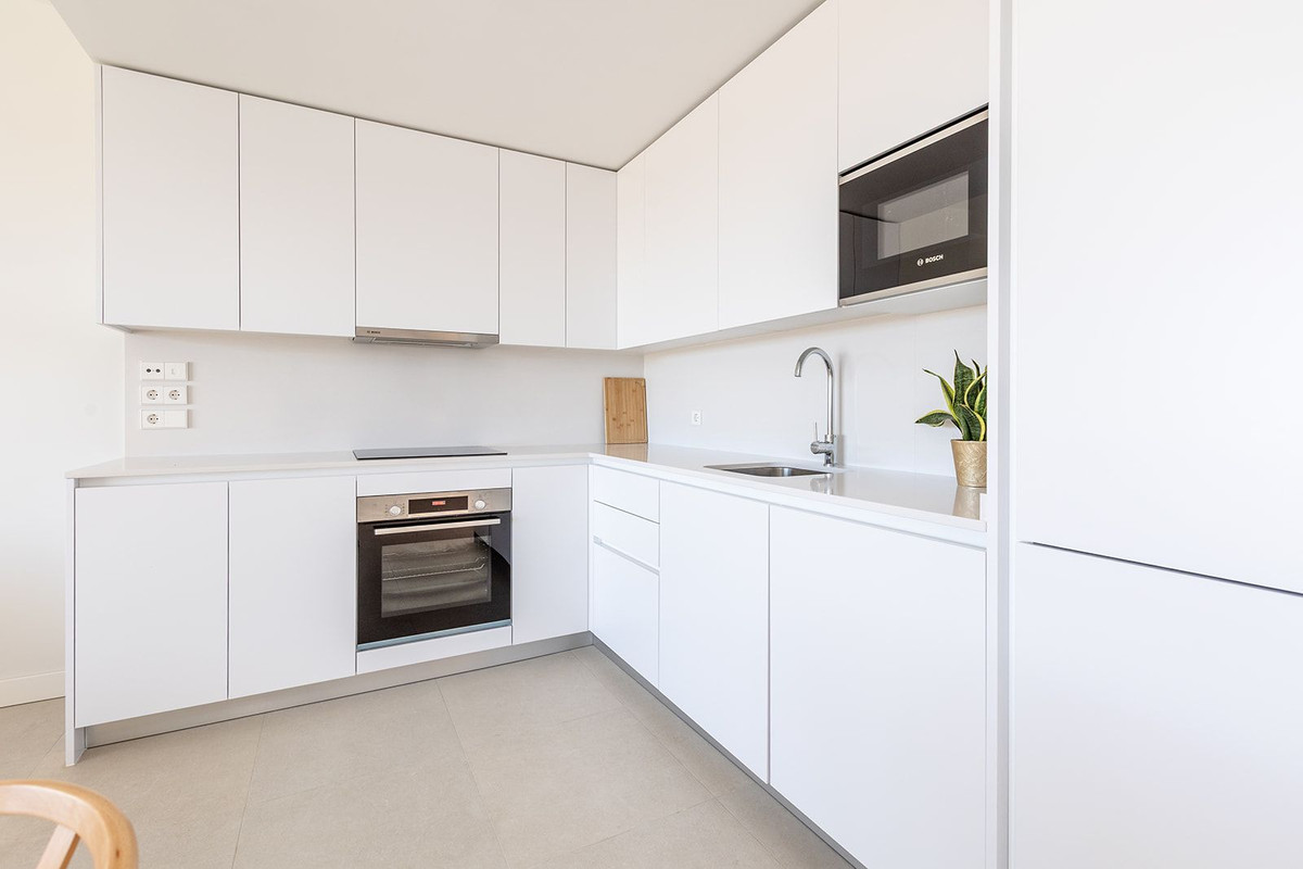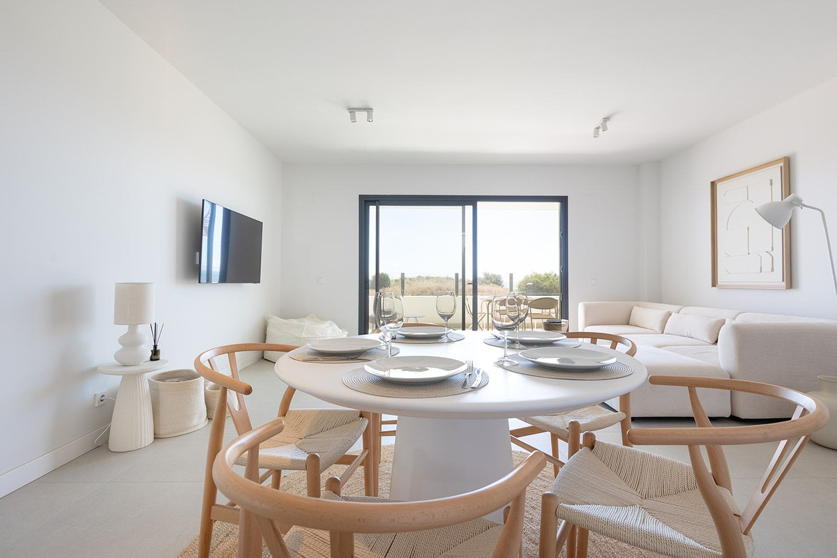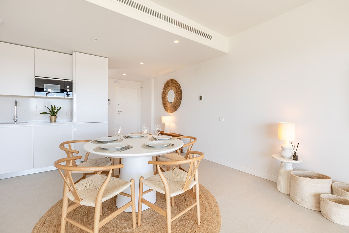 The apartment features a spacious open-plan living and dining area that opens onto a generous terrace—ideal for enjoying al fresco dining while taking in the spectacular scenery. The sleek, fully equipped kitchen includes high-end appliances and quality finishes throughout.