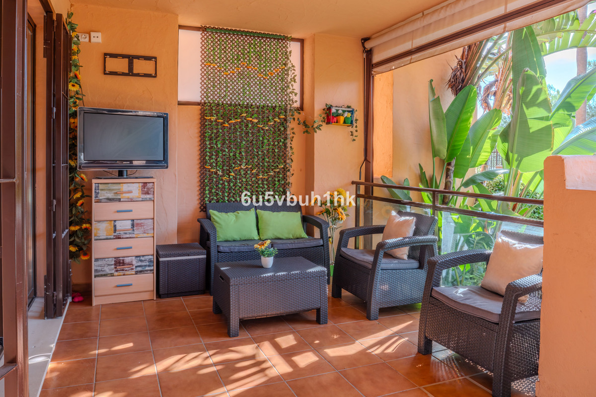 We present this superb ground-floor apartment located in the renowned Calanova Sea Golf development (Mijas Costa). Built in 2006 and in excellent condition, the property offers 105 m² of constructed area distributed across a spacious living–dining room, a fully equipped independent kitchen, 2 double bedrooms with fitted wardrobes, and 2 full bathrooms (one en suite).