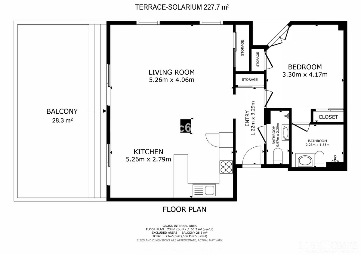 The apartment comes with a closed garage space for 1 car (24 m2) and a storage room (both included in the sale price). The building has elevator.