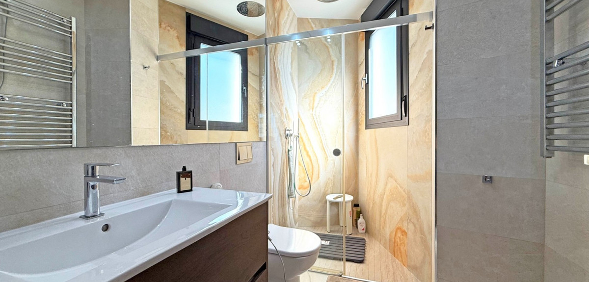 Additional features include a convenient WC, a spacious basement offering endless possibilities for storage or additional living space, and off-street parking. The luxurious finishings and attention to detail throughout the villa elevate it to a standard of modern elegance, making it an exceptional residence in one of Villamartin's most desirable locations.