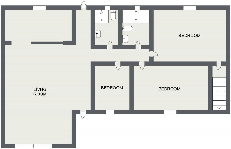 Två badrum, det ena utrustat med toalett, handfat och dusch med glasvägg.