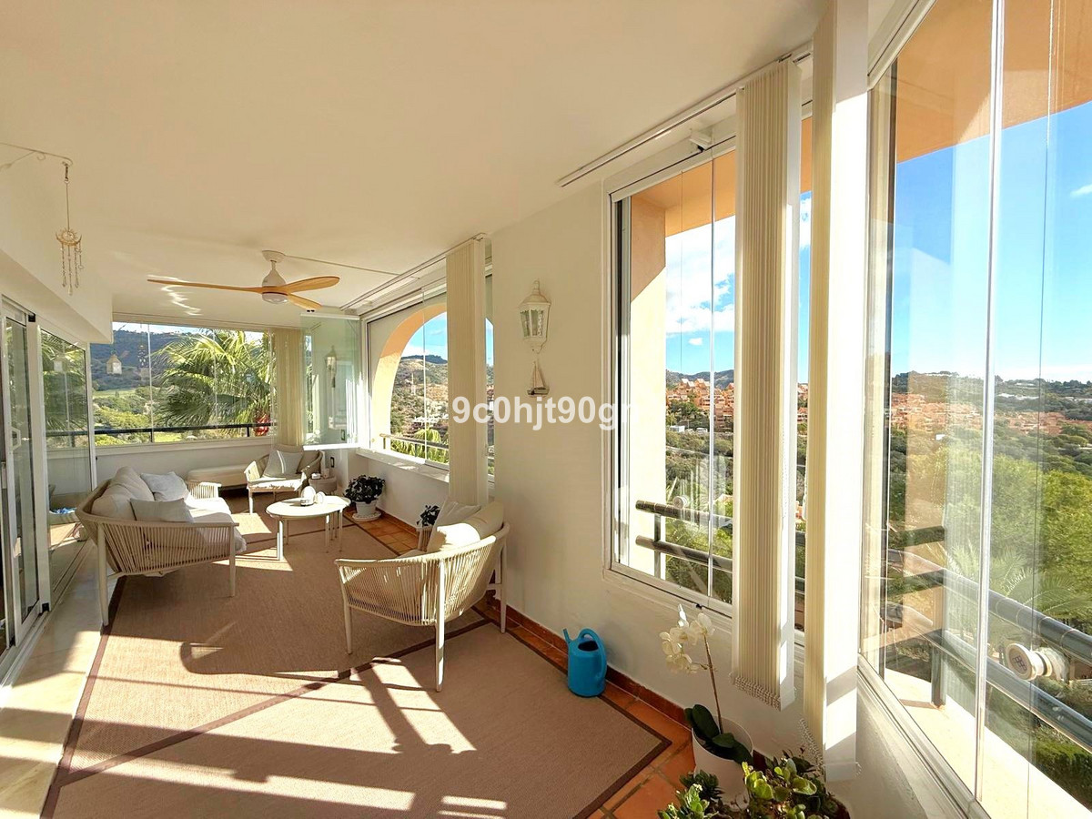 *Large panoramic terrace with glass curtains, ideal for outdoor dining, sunbathing, or enjoying Elviria's tranquil surroundings and lush green views.