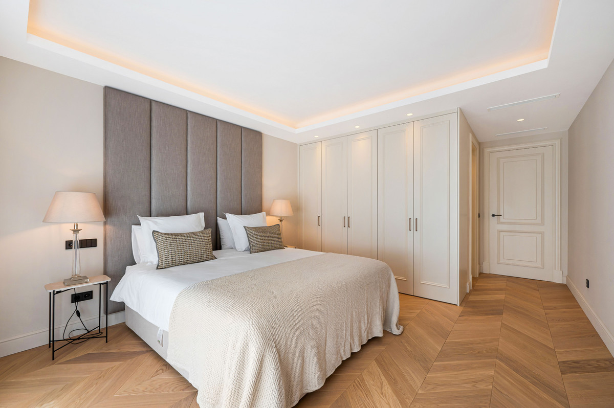 Beneath the sun terrace, a versatile space currently configured as a gym adds further appeal.