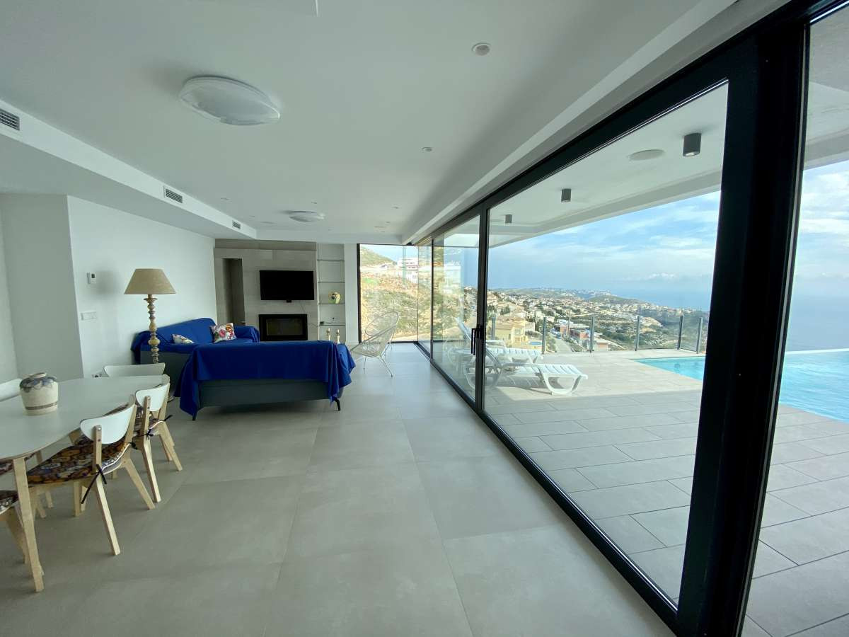 Nestled in the prestigious Cumbre del Sol, perched high above the sparkling Mediterranean Sea, this high luxury villa offers an unparalleled lifestyle of opulence and tranquility.Boasting the most breathtaking sea views imaginable, this exquisite property epitomizes the epitome of luxury living. The villa is conveniently located close to the renowned international school LES, making it an ideal choice for families seeking a sophisticated and convenient lifestyle.With a total of 4 bedrooms, 3 of which are located on the upper floor, and a separate independent apartment complete with a luxurious walk-in wardrobe and en suite bathroom, this residence offers the utmost in comfort and privacy for all occupants.Upon arrival, a stylish pergola provides covered parking, adding to the convenience and elegance of the property. The villa also offers the possibility to extend, allowing for further customization and personalization to suit the needs of its discerning residents.The interior of the villa is designed with a modern and open plan kitchen, perfect for entertaining guests and enjoying the stunning views while preparing meals. Central heating and air conditioning ensure the utmost comfort throughout the year, while ample storage space provides practicality and convenience for everyday living. With its exceptional location, luxurious amenities, and stunning sea views, this high luxury villa in Cumbre del Sol is a true sanctuary of elegance and sophistication, offering a lifestyle of unparalleled luxury and comfort.