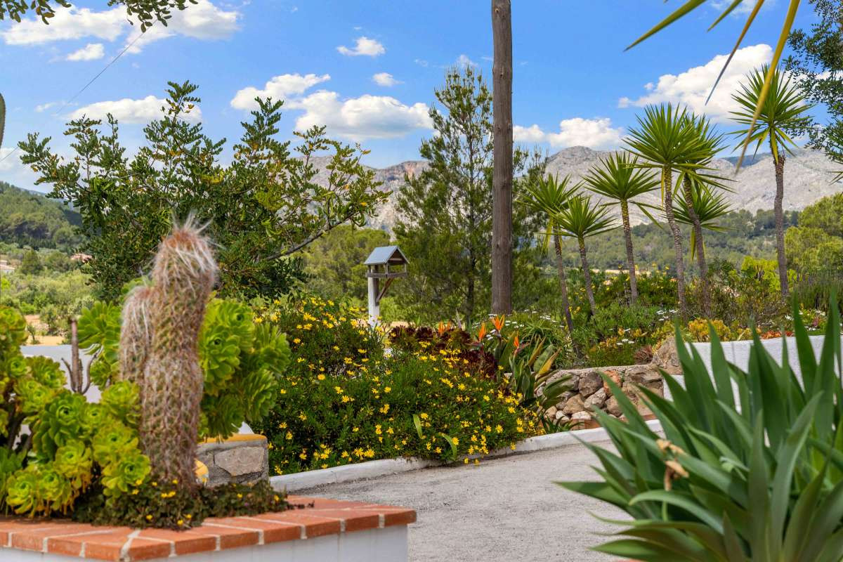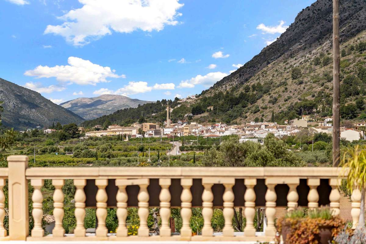 Discover this exquisite residence nestled in the heart of Murla, a true sanctuary offering unparalleled privacy and breathtaking, uninterrupted panoramic views of the lush valley below.Spanning 223 m², this beautifully maintained home is set on a generous 10,924 m² plot that features a charming vineyard, numerous olive trees, and fruit trees, all perched in an elevated position that ensures spectacular vistas from every angle. Built in 2003 and thoughtfully designed over two floors, the property exudes spaciousness and natural light.The main level hosts three inviting bedrooms, a large, fully equipped kitchen, and a cozy living room with a fireplace for an ideal space for relaxation and gatherings.The master suite upstairs provides a private retreat with an en suite bathroom and a walk in closet, offering comfort and tranquility.The outdoor spaces are equally impressive, with a beautiful patio surrounded by nature, perfect for enjoying peaceful mornings or leisurely afternoons under the sun.The southwest-facing heated saltwater pool invites refreshing dips while soaking in the stunning views. The property is equipped with a solar energy system generating approximately 9.9 kW daily, ensuring energy efficiency, along with hot and cold air conditioning for year-round comfort. There is city water plus a working well for landscape irrigation. In addition there are two individual water depository tanks, one of 1000l and one of 3000l with pump for landcape irrigation.Privacy is paramount here, the home is secluded yet accessible, with professional garden maintenance machinery available and negotiable. The lush surroundings, combined with the expansive views and quiet ambiance, make this property a true retreat from the hustle and bustle of everyday life.Located just a short drive from the charming towns of Jalon, Orba or Alcalali, residents can enjoy the vibrant local markets, excellent bars, medical centers and renowned restaurants nestled in the valley. Within a short walk to the town of Murla, which can be seen from the property, there a year around fiestas, popular local bars with authentic spanish tapas and wines.The beaches of Denia are approximately 30 minutes away, offering golden sands and Mediterranean charm. For shopping, the Ondara shopping center is within easy reach, providing a wide range of amenities.Additionally, a new IB school will soon open in Jalon, only about 15 minutes from the property, making this an ideal location for families seeking quality education in a peaceful setting.As well there is an excellent elementary school in Murla, which is quiet renound in the whole region.This exceptional property combines privacy, natural beauty, and convenience, offering a unique opportunity to enjoy the best of the valley and coastal lifestyle.