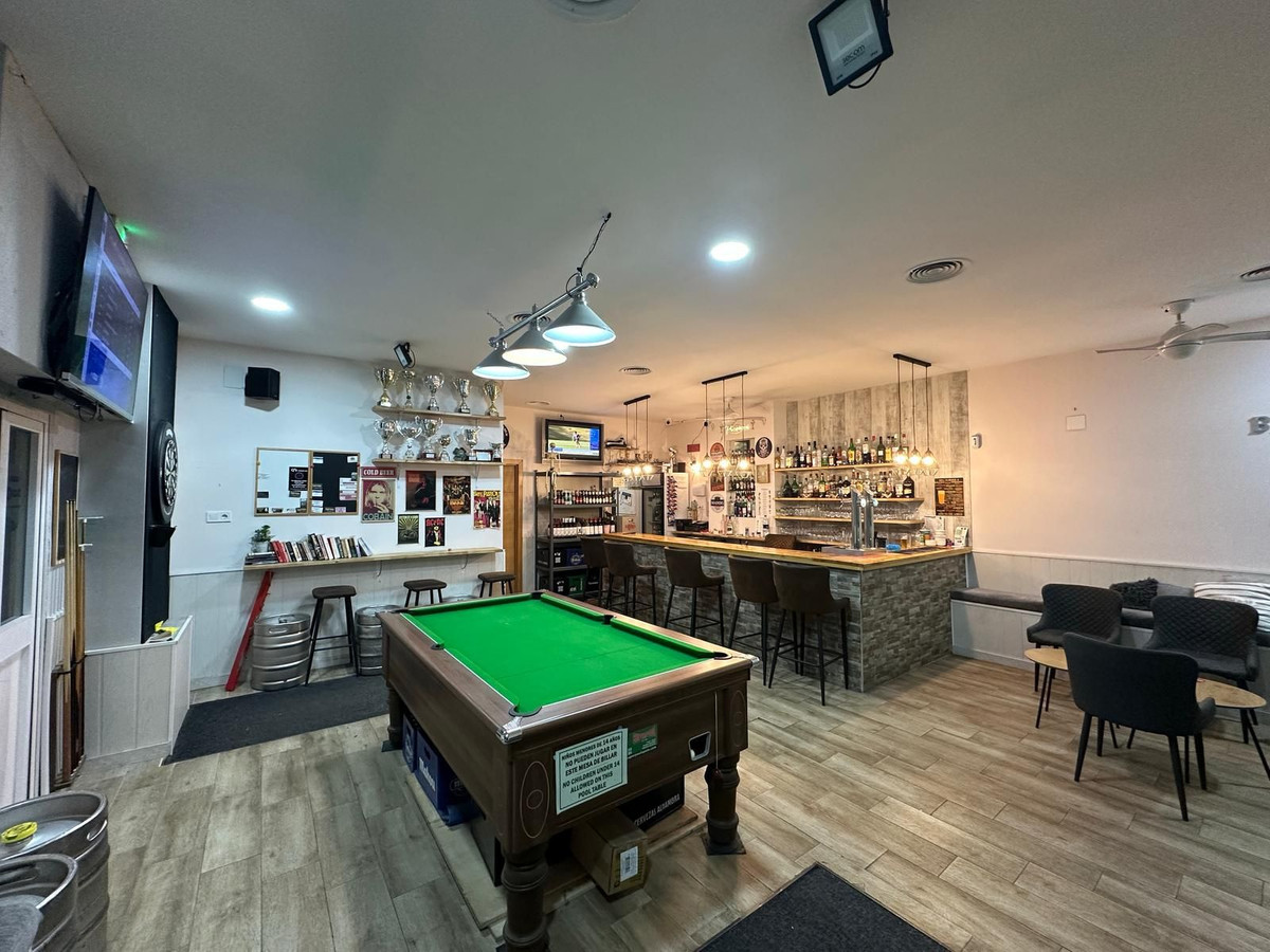 Inside, we have a pool table and 2 targets for darts (the bar participates in winter and summer billiard leagues organized by SuperPool), there are 4 TVs (+ 2 that are put outside), A/C hot and cold, shelf for beer and wines.